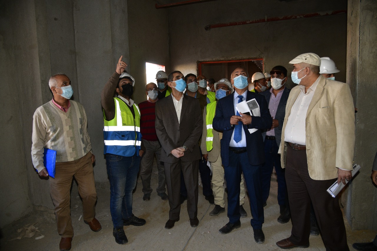 وخلال جولته بالمستشفى تفقد المحافظ المبنى والذي تم الانتهاء من بناء الهيكل الخرساني الخاص به وجار أعمال دهان الحوائط، تركيب مواسير شبكة الصرف، صب الخرسانة والعزل، تركيب مواسير شبكة إطفاء الحرائق وأعمال تمديد أسلاك شبكة الكهرباء لمسارات الإنارة.