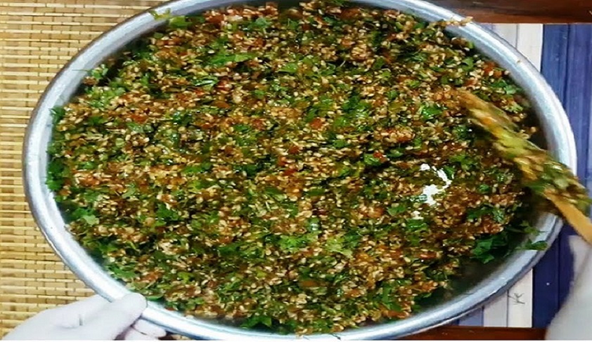- ثم نرفع الصلصة من على النار، ونضيف لها البقدونس والشبت والكسبرة مفرومين، ونقلب جيدا لتصبح جاهزة بعد ذلك.