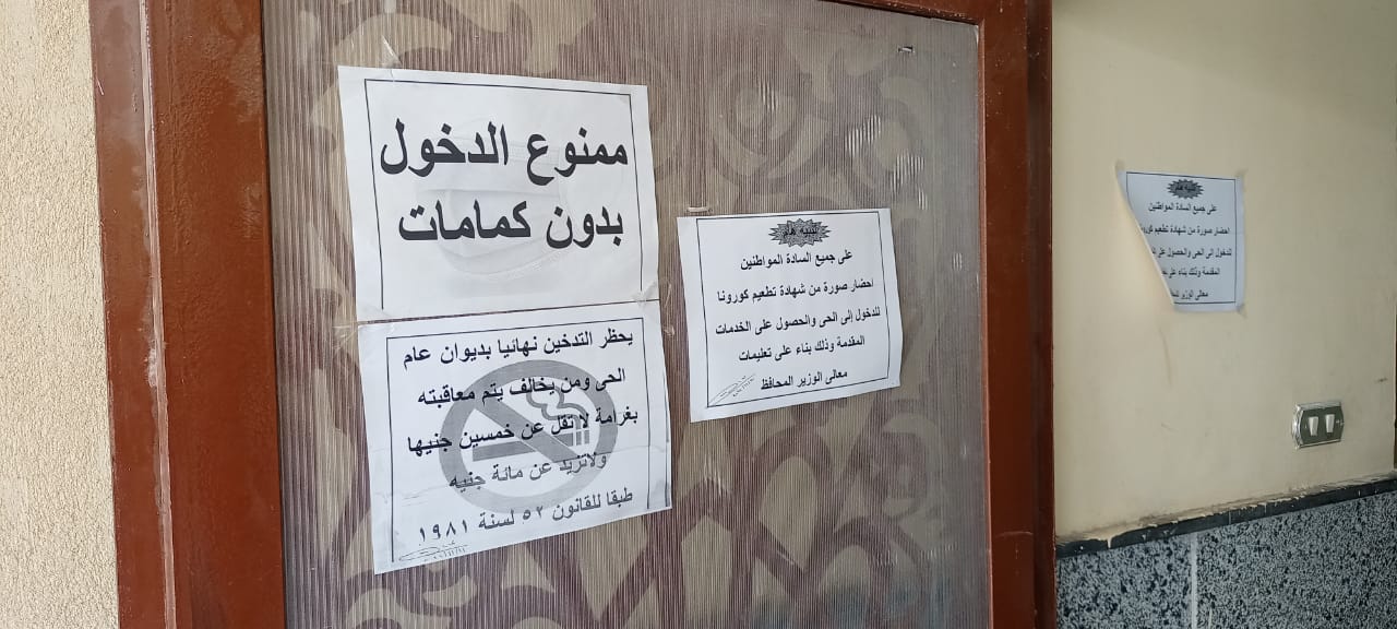 وشهدت عدد من دواوين الأحياء والوحدات المحلية وكافة المصالح الحكومية الأخرى تشديدات على دخول المواطنين الغير حاصلين على اللقاح، حيث فرض حي ثالث بالإسماعيلية على المواطنين والموظفين الدخول إلى مقر رئاسة الحي إلا بعد إبراز الشهادة الصحية الخاصة بمنح اللقاح.