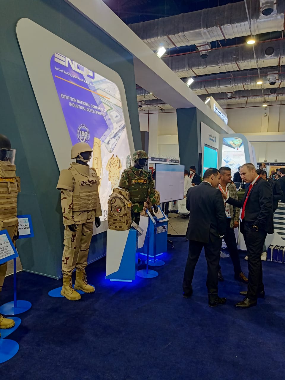 من جانبه، أكد العقيد محمد فهمي مدير عام مهمات الوقاية بالشركة بأن المعرض نافذة على العالم أطلقتها مصر في توقيت صعب جدًا بسبب جائحة كورونا ومنحنا فرصة كبيرة لعرض منتجات الشركة من السترات الواقية من الرصاص وهو أول مصنع يتم إنشائه في مصر بخبرات وتكنولوجيا وعماله مصرية خالصة، مشيرًا إلي أن الشركة الوطنية المصرية للتطوير والتنمية الصناعية تسعى لغزو السوق العالمي والمنافسة بقوة، كما أن الشركة تقوم بإنتاج الأقمشة العسكرية بمختلف أنواعها، أشار فهمي أن الشركة حاليًا تقوم بتنفيذ عقود مع الجانب السعودي.