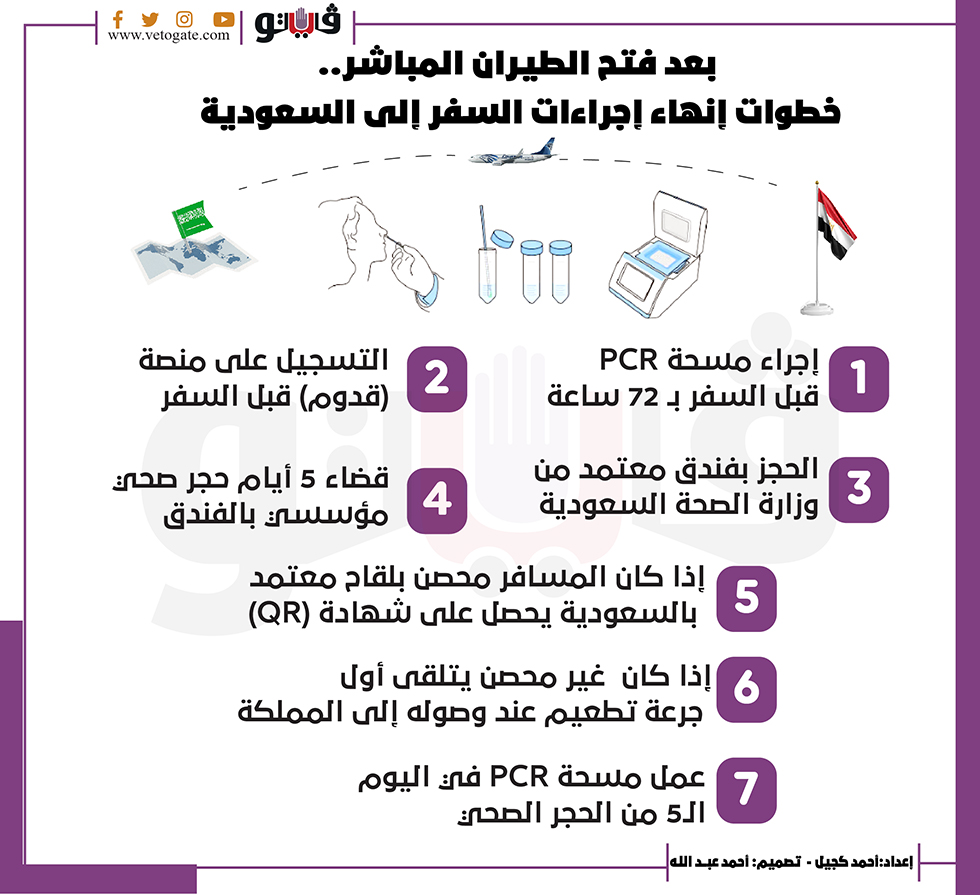 بعد فتح الطيران المباشر.. خطوات إنهاء إجراءات السفر إلى السعودية | إنفوجراف الأربعاء 01/ديسمبر/2021 - 08:45 م 12/1/2021 8:45:17 PM السعودية أحمد كحيل شارك طباعة 18 حجم الخط شارك طباعة السعودية الطيران المباشر بين مصر والسعودي مصر والسعودية كورونا
