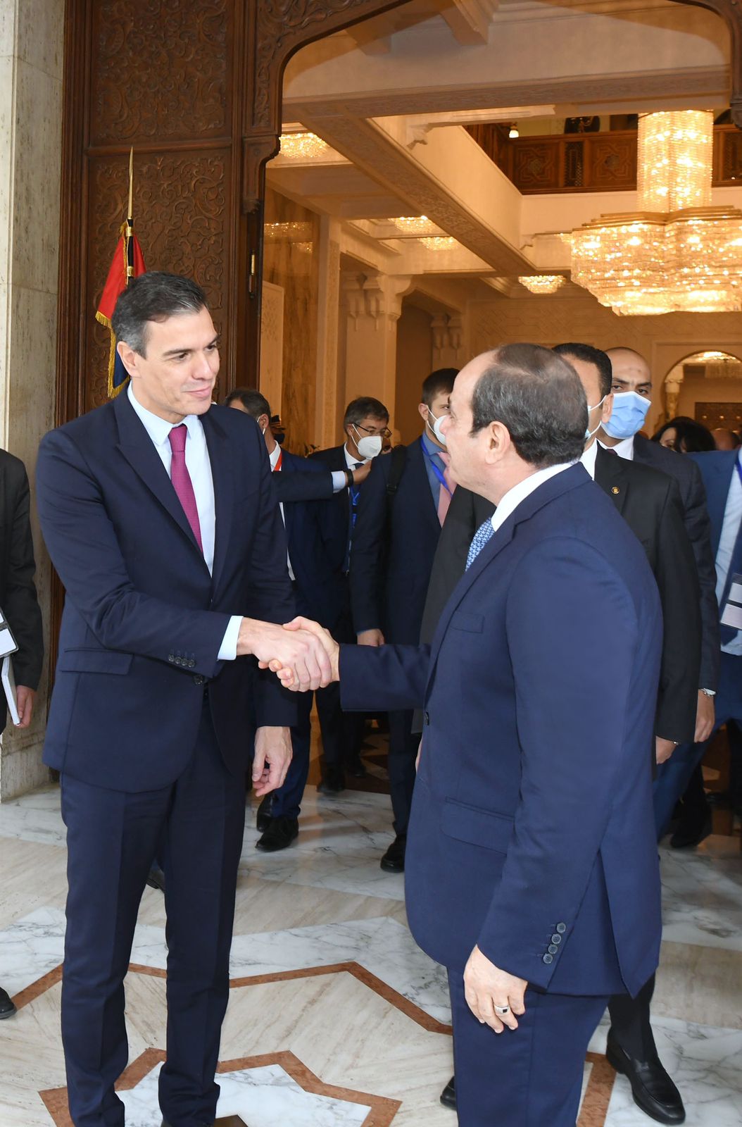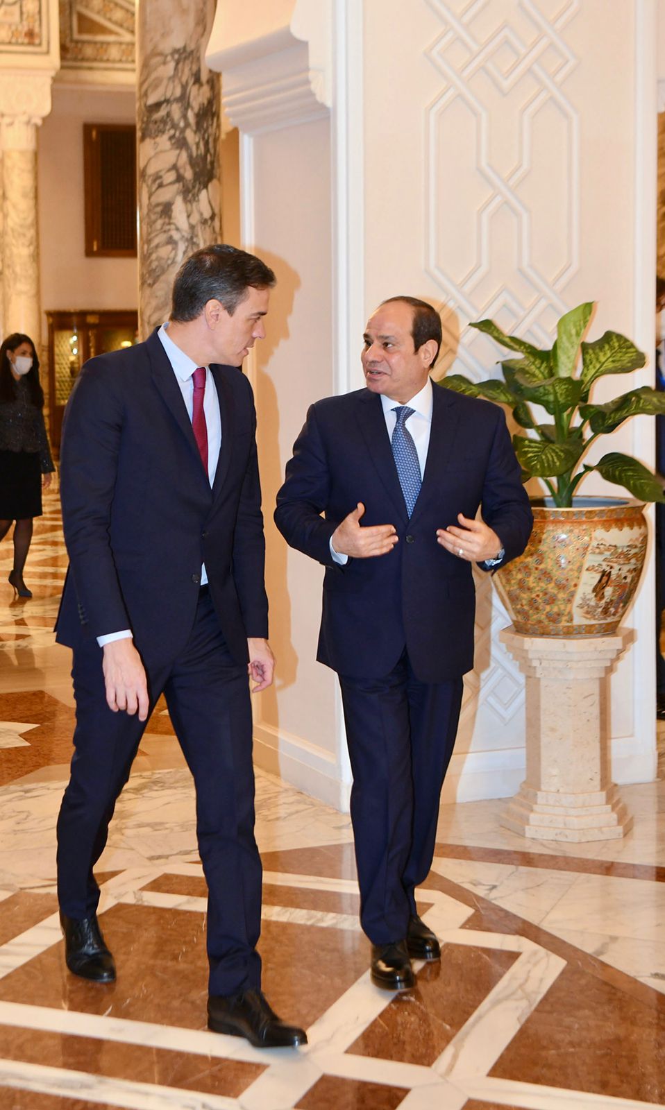 من جانبه؛ أعرب رئيس الحكومة الإسبانية عن سعادته بزيارة مصر وتقديره لحفاوة الاستقبال، مؤكدًا عُمق أواصر الصداقة والروابط التاريخية التي تجمع بين البلدين، وتطلع بلاده للعمل على الارتقاء بالتعاون الثنائي مع مصر في كافة المجالات، خاصةً في ظل الدور المحوري الذي تقوم به مصر في إرساء دعائم الأمن والاستقرار في الشرق الأوسط والبحر المتوسط، بالإضافة إلى دورها الحيوي بقيادة الرئيس في مكافحة ظاهرة الهجرة غير الشرعية عبر المتوسط، وكذا مكافحة الإرهاب والفكر المتطرف ونشر ثقافة التسامح والتعايش واحترام حرية العقيدة، وهو الأمر الذي يرسخ من دور مصر المحوري والهام كعامل داعم لعلاقات أوروبا بالمنطقة العربية والقارة الأفريقية وكذلك جنوب البحر المتوسط.