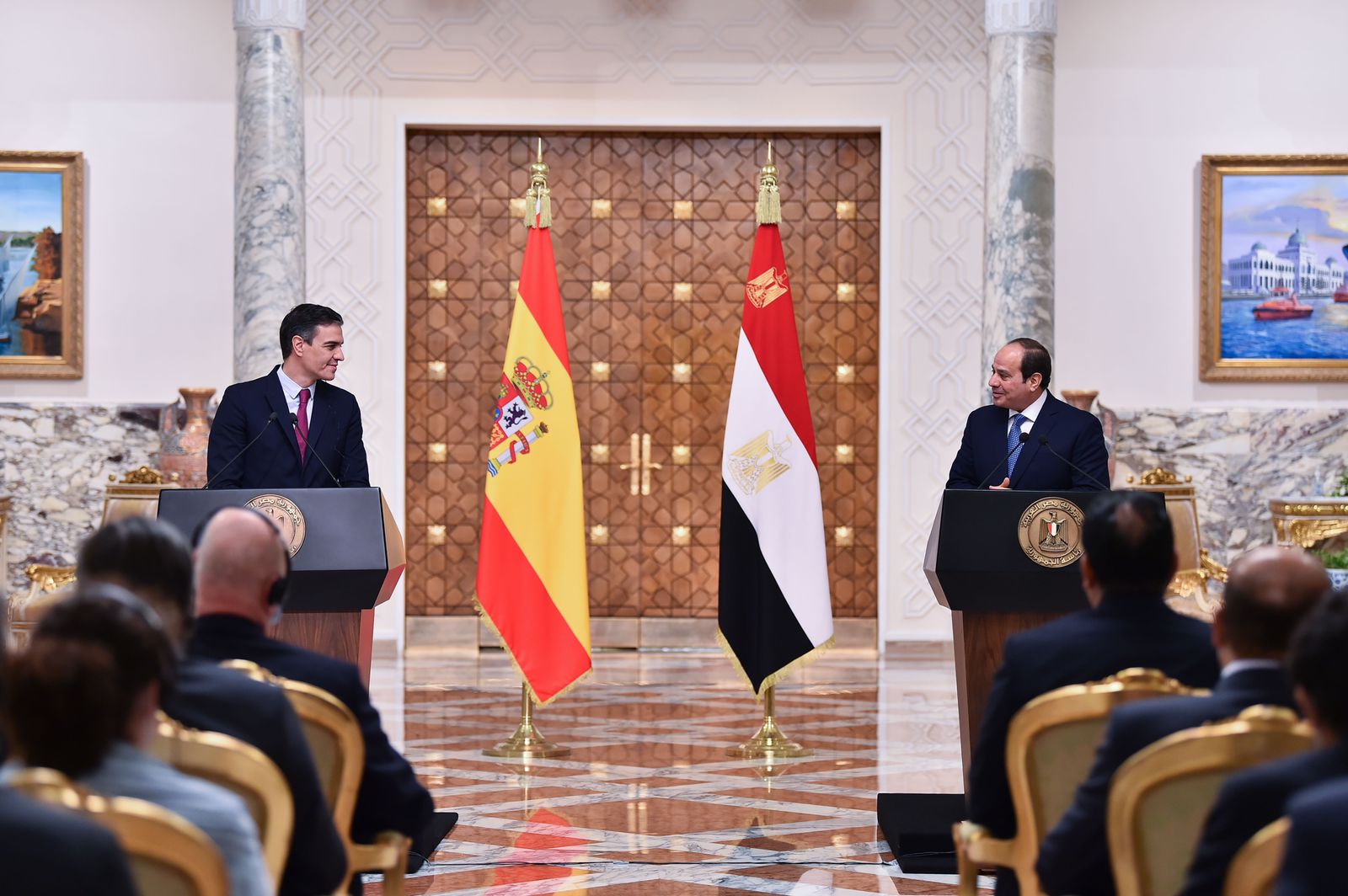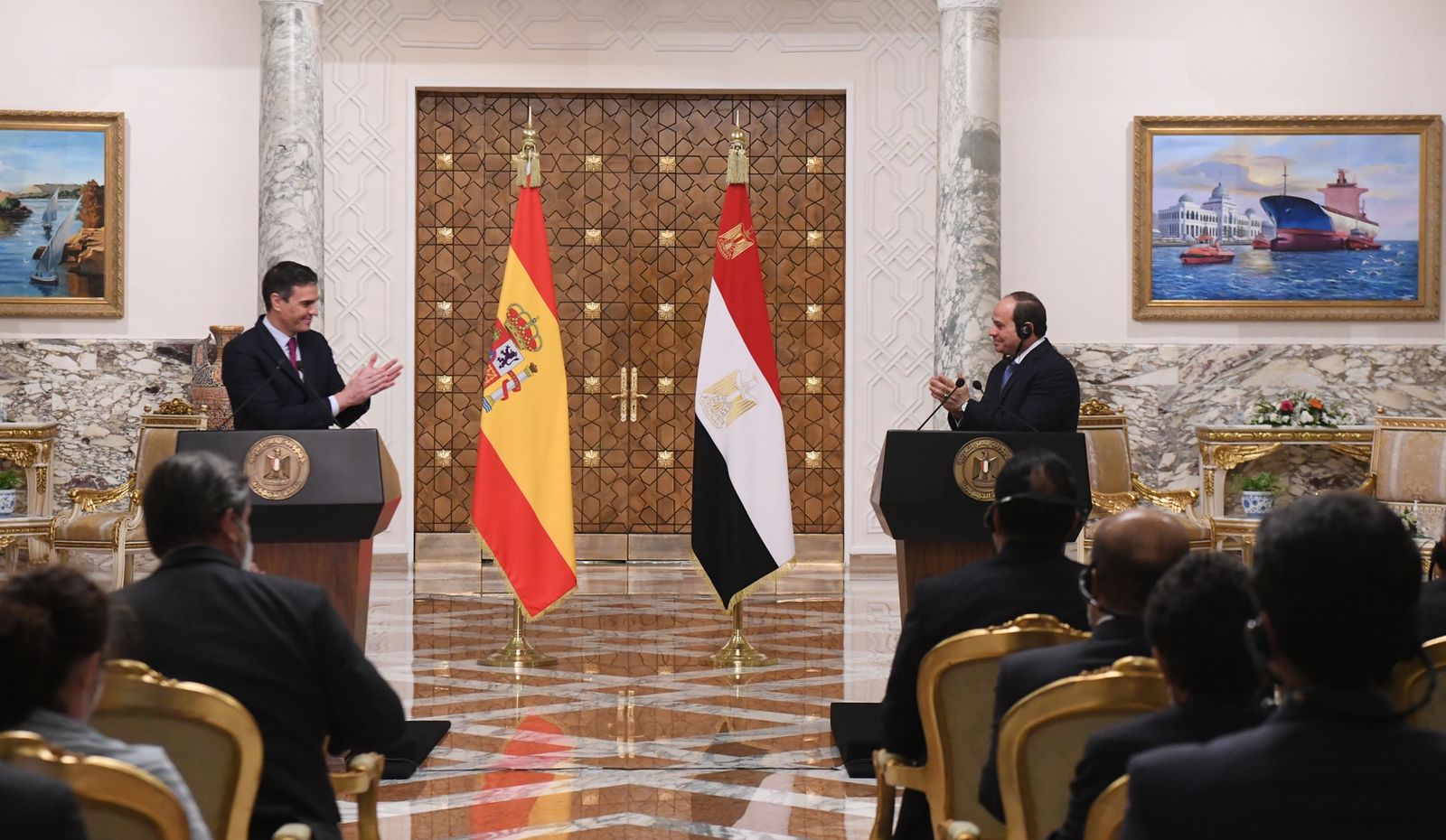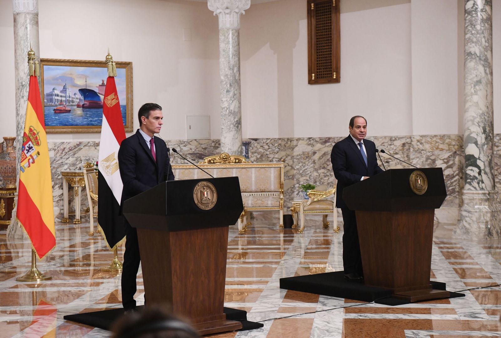 كما عقد مؤتمر صحفي بقصر الاتحادية بين الرئيس عبد الفتاح السيسي ورئيس حكومة مملكة أسبانيا بيدرو سانشيز وألقي الرئيس كلمة جاء نصها: