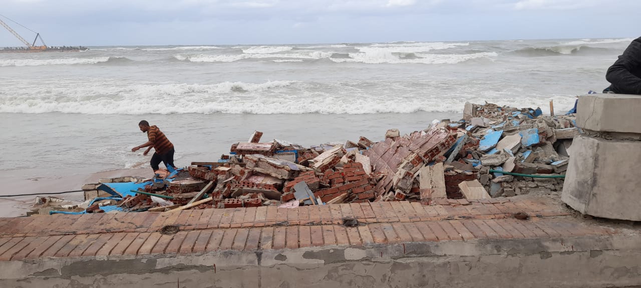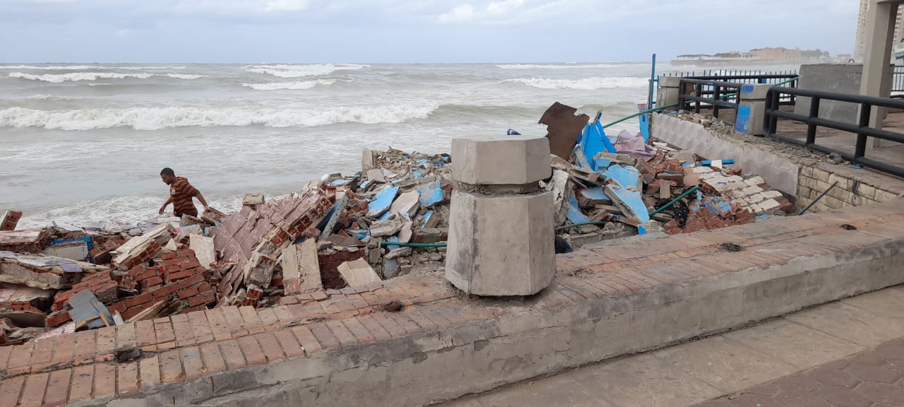 و تسببت سرعة الرياح وارتفاع أمواج البحر، فى انهيار غرفة بشاطئ سيدى بشر وسور على طريق الكورنيش بمنطقة سيدى شرقي الإسكندرية.
