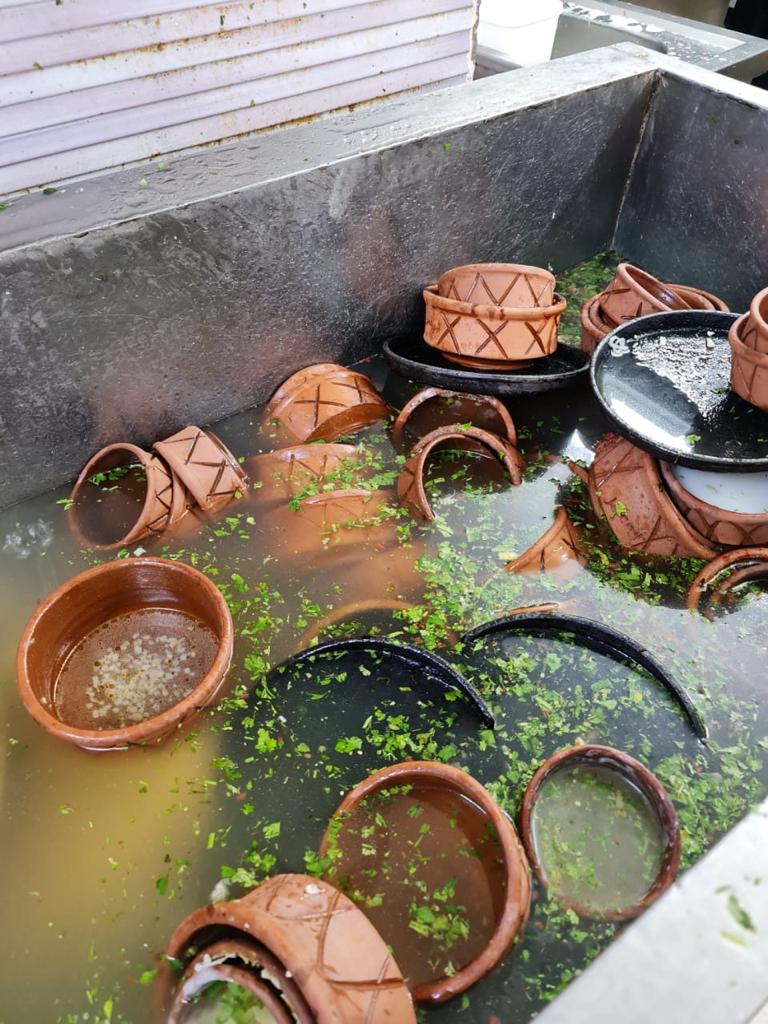جميع أواني الطبخ المستخدمة لا تصلح للطهي وتم إبلاغ الجهات المعنية بضرورة الغلق لحين تتم الإصلاحات وتوافر الاشتراطات.