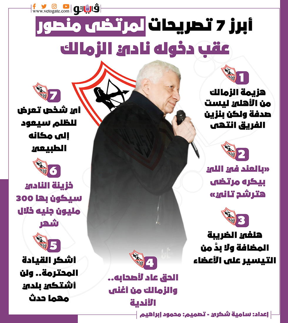 أبرز 7 تصريحات لمرتضى منصور عقب دخوله نادي الزمالك | إنفوجراف الخميس 02/ديسمبر/2021 - 09:03 م 12/2/2021 9:03:03 PM مرتضى منصور شارك طباعة 18 حجم الخط شارك طباعة نادي الزمالك مرتضى منصور الزمالك الضريبة المضافة الأهلي