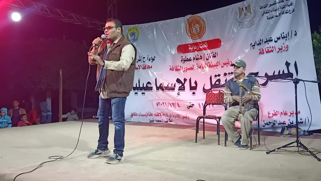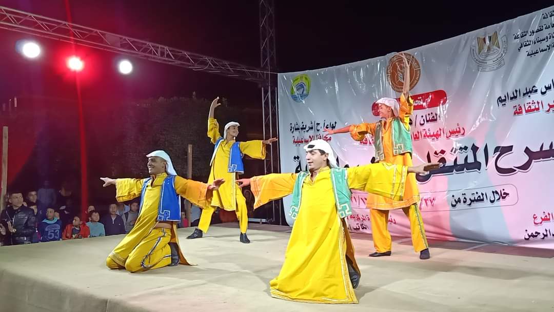 ومن جهة أخرى تستمر فعاليات وعروض المسرح المتنقل بالإسماعيلية، حيث أقيم أم حفل ضم العديد من الأنشطة الفنية وأمسية شعريه للشاعر بهاء اللبودى وقدم مجموعة من القصائد في حب مصر.