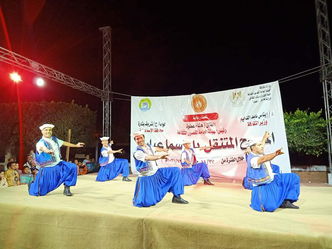 كما اختتم الحفل بعرض فني لفرقة الاسماعيلية للفنون الشعبية، بقيادة الفنان ماهر كمال، التي قدمت خلال الاحتفالية، مجموعة من أغانى منها الصيادين، بتغني لمين، نوح الحمام، ضم ضم، البدو.