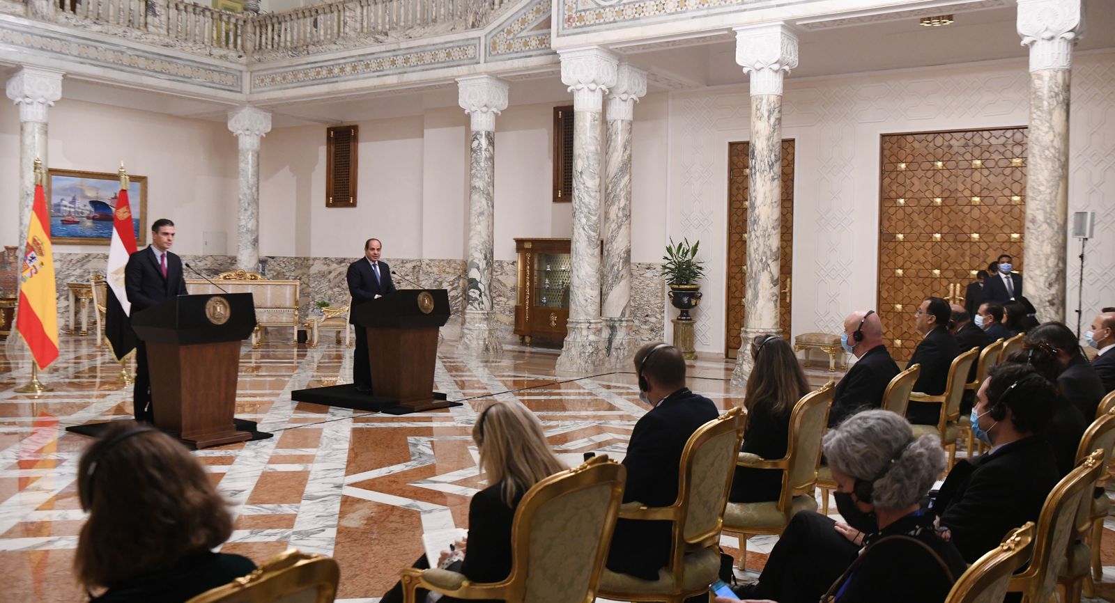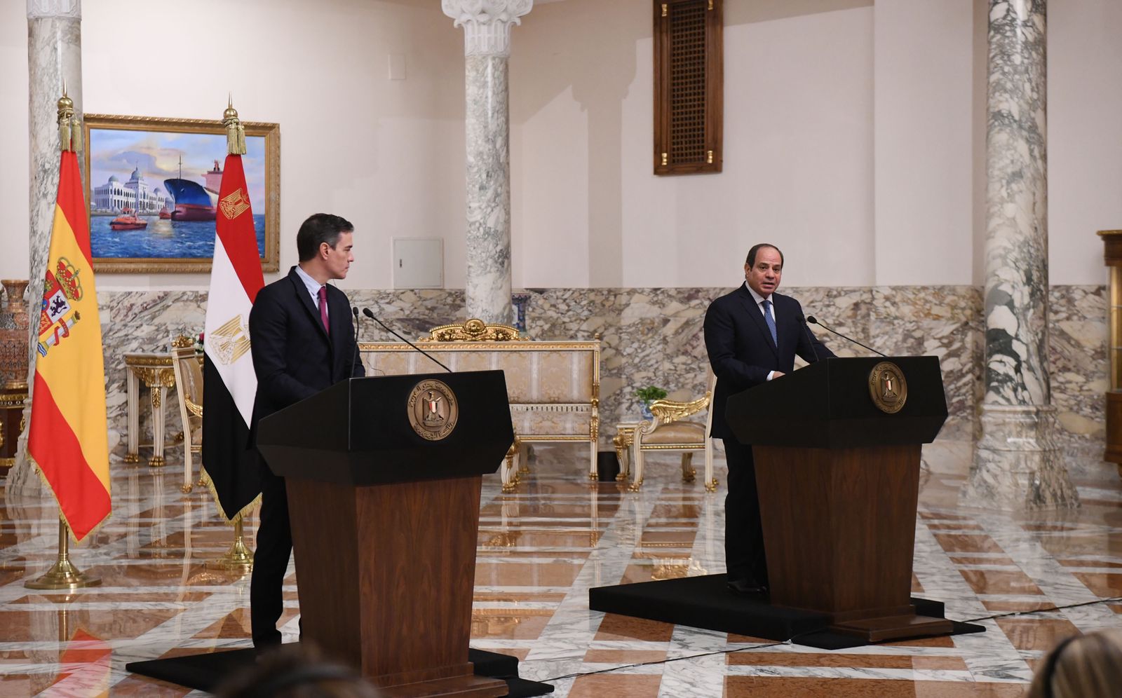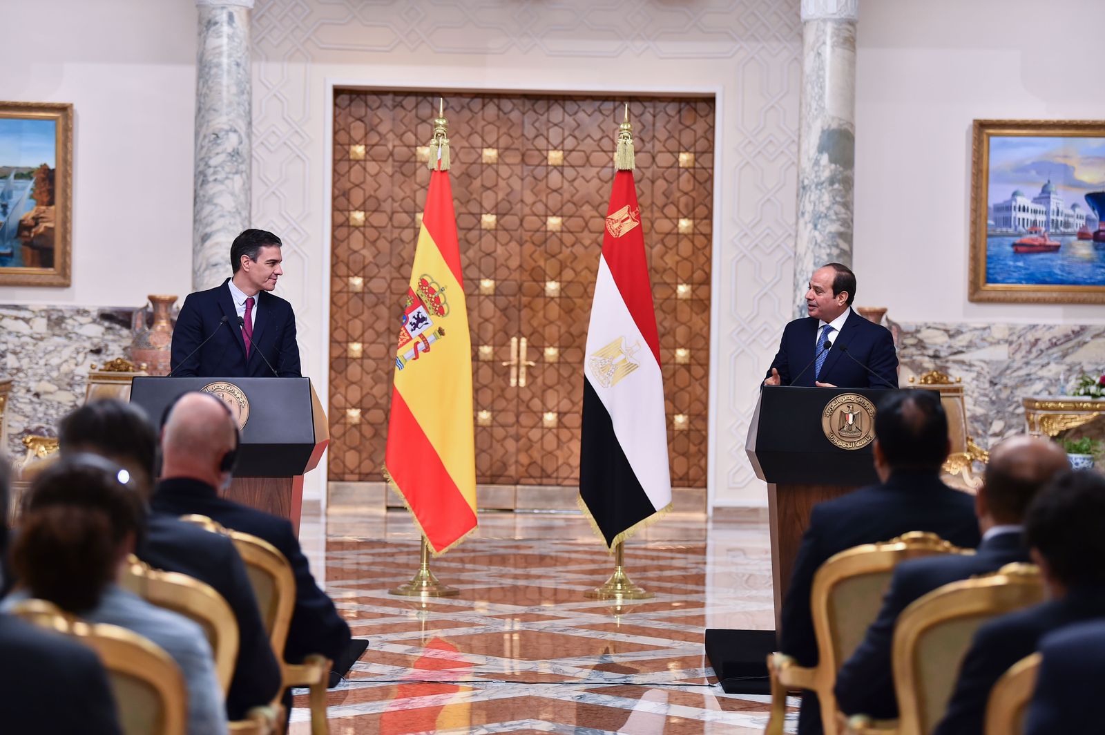 من جانبه؛ أعرب رئيس الحكومة الإسبانية عن سعادته بزيارة مصر وتقديره لحفاوة الاستقبال، مؤكدًا عُمق أواصر الصداقة والروابط التاريخية التي تجمع بين البلدين، وتطلع بلاده للعمل على الارتقاء بالتعاون الثنائي مع مصر في كافة المجالات، خاصةً في ظل الدور المحوري الذي تقوم به مصر في إرساء دعائم الأمن والاستقرار في الشرق الأوسط والبحر المتوسط، بالإضافة إلى دورها الحيوي بقيادة الرئيس في مكافحة ظاهرة الهجرة غير الشرعية عبر المتوسط، وكذا مكافحة الإرهاب والفكر المتطرف ونشر ثقافة التسامح والتعايش واحترام حرية العقيدة، وهو الأمر الذي يرسخ من دور مصر المحوري والهام كعامل داعم لعلاقات أوروبا بالمنطقة العربية والقارة الأفريقية وكذلك جنوب البحر المتوسط.