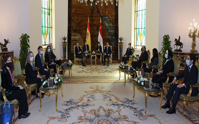 كما استعرض الرئيس الجهود المصرية للتنمية من خلال المبادرات والمشروعات القومية المختلفة، معربًا عن التطلع لمزيد من انخراط إسبانيا عبر آليات مؤسساتها التنموية المختلفة في أولويات خطط التنمية المصرية بمختلف المجالات، فضلًا عن العمل على مضاعفة حجم الاستثمارات الإسبانية في مصر ودفع عجلة التعاون الاقتصادي بين الجانبين، خاصةً في ضوء الإصلاحات التي دشنتها الحكومة المصرية لتحسين البيئة التشريعية المتعلقة بمناخ الاستثمار والأعمال في مصر، وكذلك الفرص الواعدة المتاحة بالمشروعات الكبرى.
