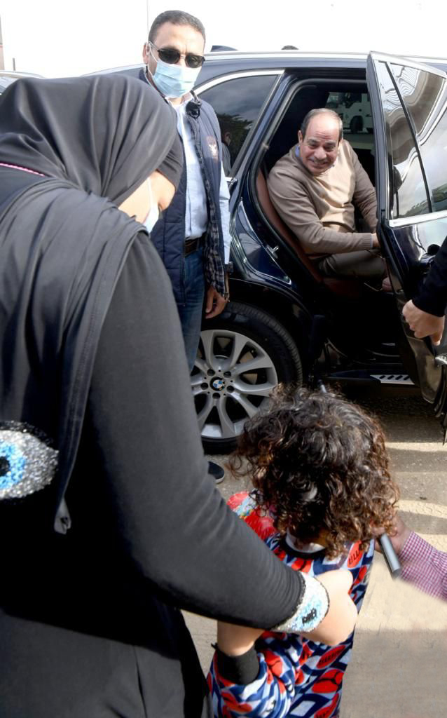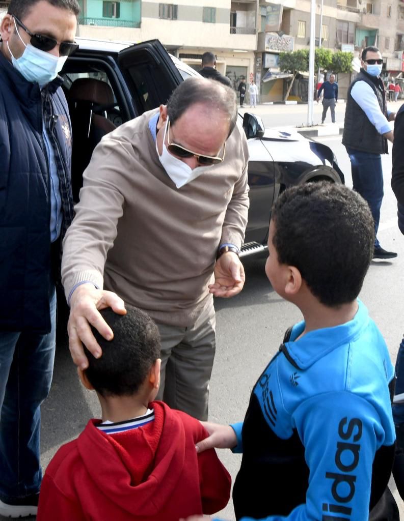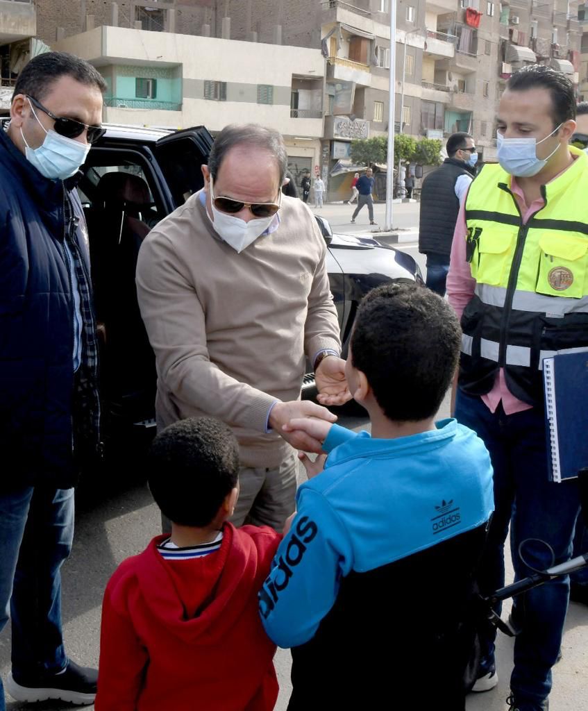 السيسي يداعب عددًا من الأطفال خلال تفقده مشروعات شبكة الطرق الجديدة | صور