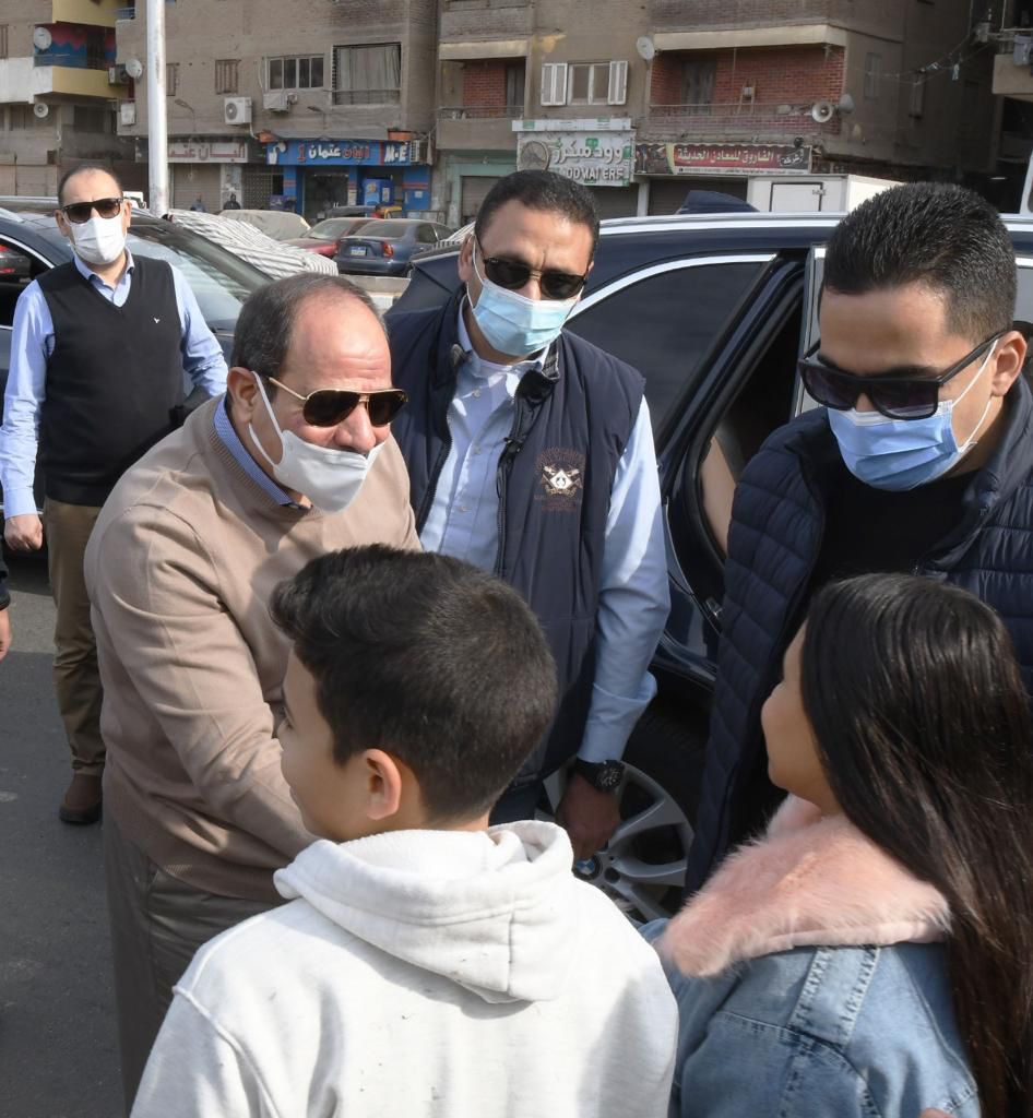 توقف الرئيس عبد الفتاح السيسي اليوم خلال الجولة التفقدية لتبادل التحية والحديث مع عدد من المواطنين الذين تصادف تواجدهم أثناء مروره، حيث استمع إلى طلباتهم واحتياجاتهم.