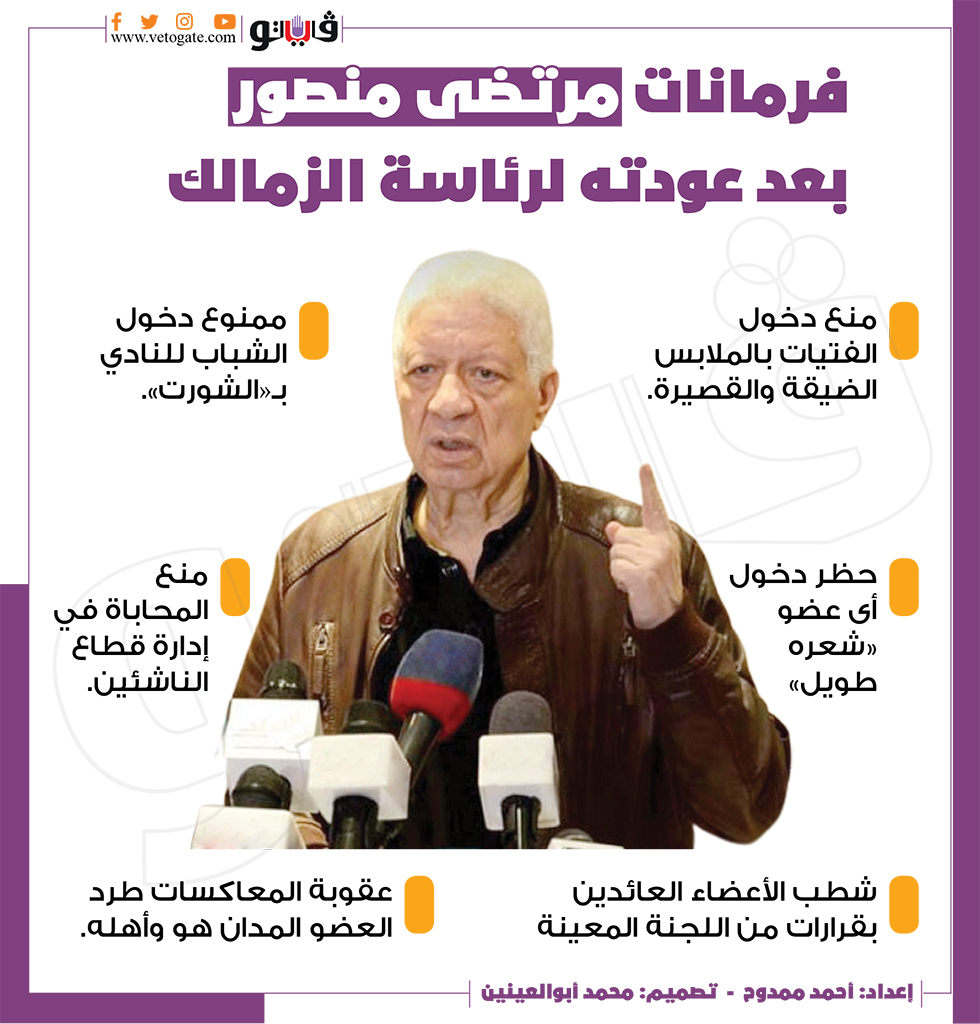 فرمانات مرتضى منصور بعد عودته لرئاسة الزمالك| إنفوجراف الجمعة 03/ديسمبر/2021 - 06:13 م 12/3/2021 6:13:21 PM أحمد ممدوح شارك طباعة 18 حجم الخط شارك طباعة