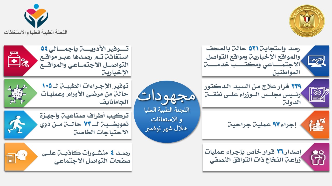 لجنة الاستغاثات الطبية بمجلس الوزراء تستجيب لـ 521 حالة خلال نوفمبر