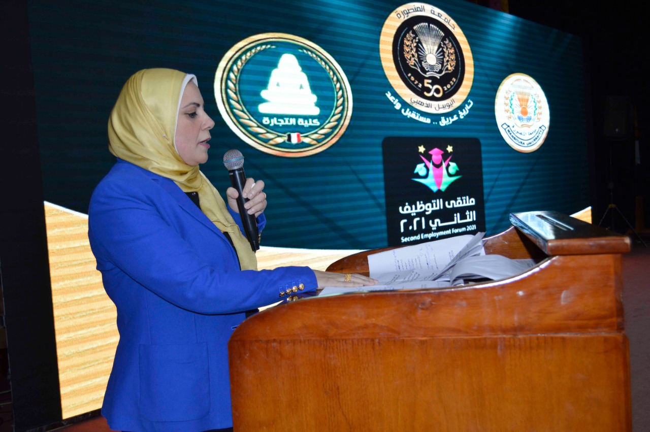 وأضافت أن إقامة الملتقى الثانى للتوظيف تزامنا مع اليوبيل الذهبى لجامعة المنصورة يعد انطلاقة للارتقاء بمستوى الخريجين من خلال عقد الشراكات التدريبية مع مختلف الشركات والبنوك والتوعية بدعم المشروعات الصغيرة وريادة الأعمال.