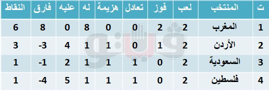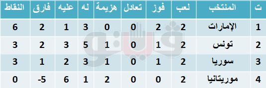 ترتيب المجموعة الثانية لبطولة كأس العرب