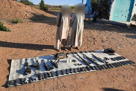 كما أمكن ضبط العنصرين الآخرين، وبتفيش المنطقة عُثر على (7 بنادق آلية - طبنجة - 49 خزينة - كمية من الطلقات مختلفة الأعيرة – كمية من مخدر الحشيش - ميزان حساس - مبلغ مالى)، وكذا ضبط (سيارة- ترو سيكل- دراجه نارية).