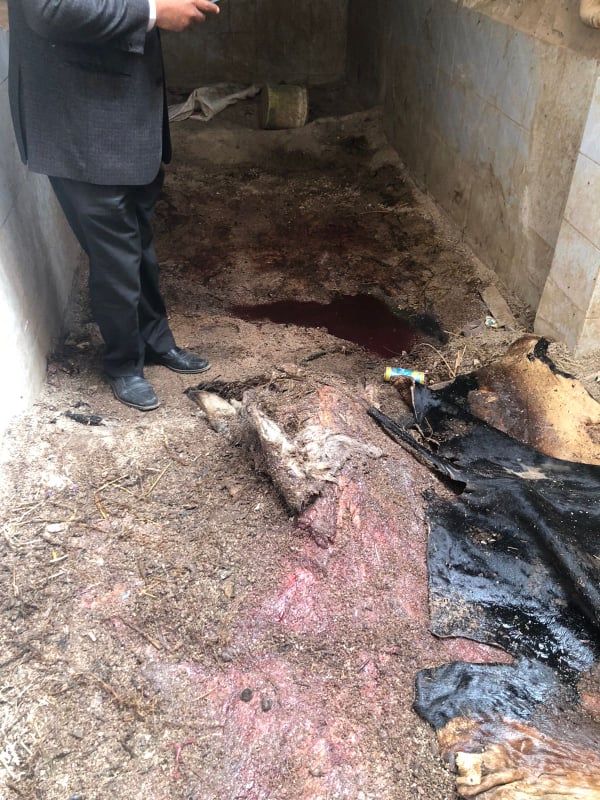 بسؤال القائم على نشر مقطع الفيديو المشار إليه، قرر بأنه حال عودته لمسكنه فوجئ بوجود جثامين الدابتين، فقام بتصوير مقطع الفيديو وبثه لاعتقاده بأنه سيتم تقطيعهما وبيعهما بالأسواق، وتم اتخاذ الإجراءات القانونية.
