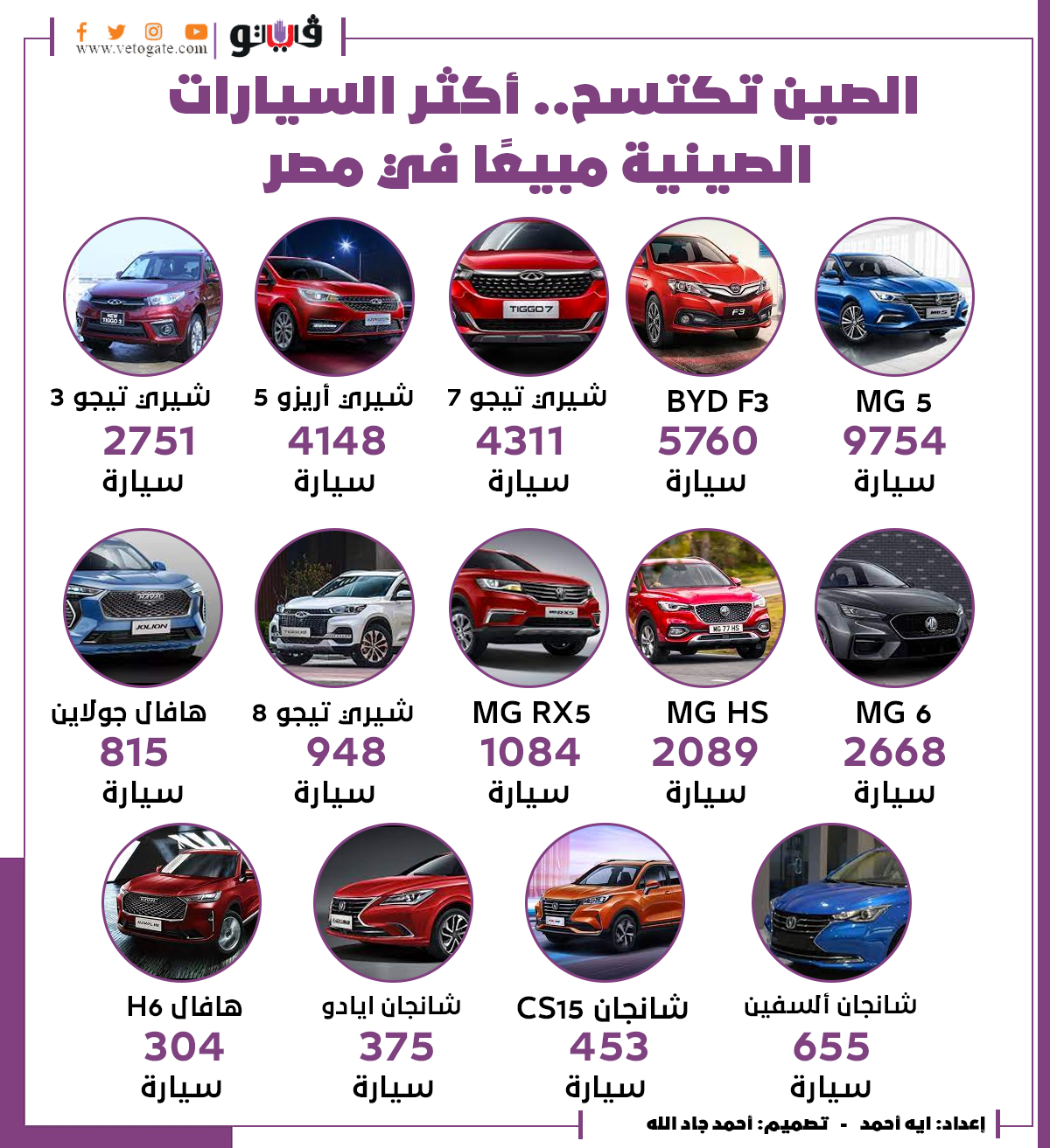 الصين تكتسح.. أكثر السيارات الصينية مبيعًا في مصر | إنفوجراف الثلاثاء 07/ديسمبر/2021 - 05:09 م 12/7/2021 5:09:41 PM أكثر السيارات الصينية مبيعًا في مصر آية أحمد شارك طباعة 18 حجم الخط شارك طباعة السيارات سيارات سوق السيارات مبيعات السيارات السيارات الصينية في مصر اميك المبيعات الأميك مبيعات MG HS أكثر السيارات شيري