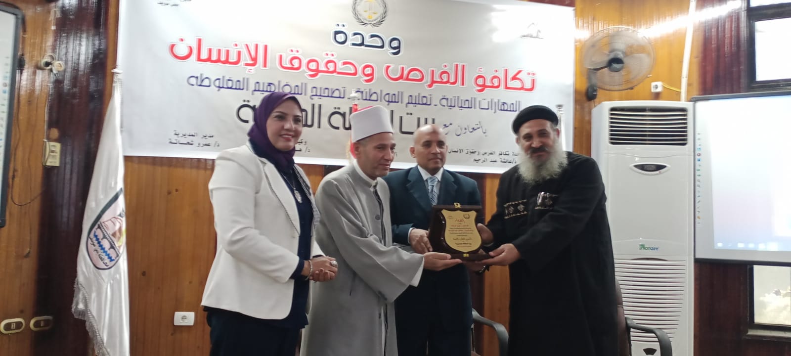 وعلى هامش المؤتمر أهدى وكيل وزارة التربية والتعليم، درع المديرية لبيت العائلة المصرية على مشاركتهم الفعالة، وتكريم مقرر المجلس القومي للسكان، ومديرية الصحة لتعاونهم مع مديرية التعليم في كافة المجالات والأنشطة، وبعض من مديري المدارس ومنسقي وحدات تكافؤ الفرص وحقوق الإنسان.