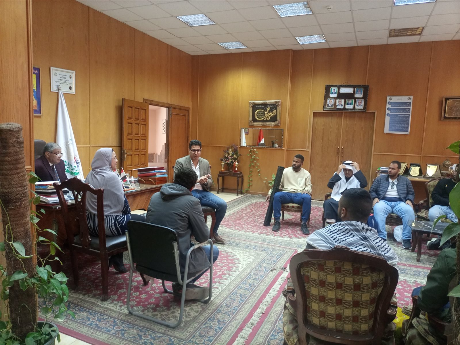 و على هامش الملتقى إلتقى عميد الكلية ومنسق الطلاب الوافدين بالكلية والمشرف العام على الوافدين بالطلاب وعرض فيه المشرف العام على الوافدين الخدمات التي تقدمها إدارة ونادى الطلاب الوافدين مؤكدا أهمية مثل هذه اللقاءات وهذه الفعاليات ودعا الطلاب للاندماج بصورة فعالة داخل المجتمع الجامعى والنشاط الطلابى ودعا الكليات لتحذو حذو كلية الطب البيطرى فى التفاعل النشط مع الطلاب الوافدين.