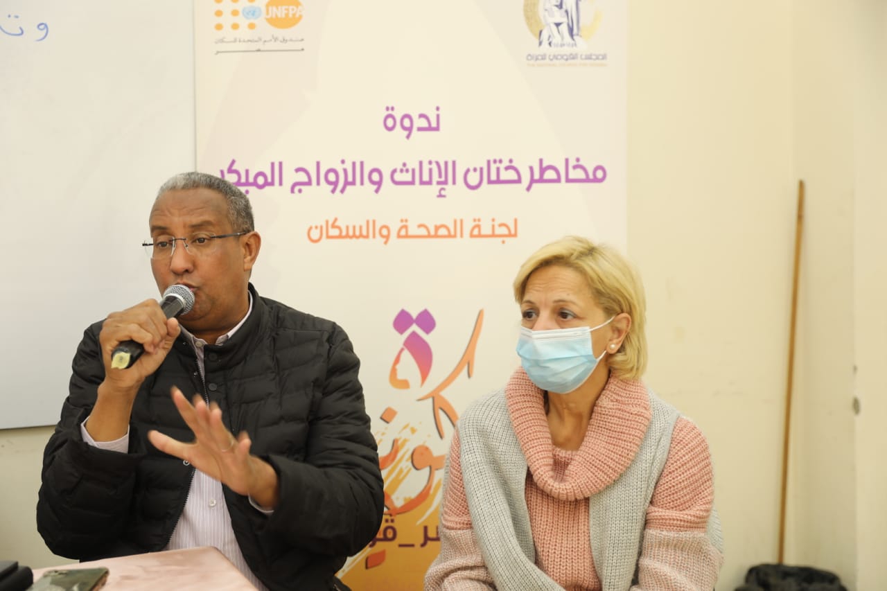 نظمت لجنة الصحة والسكان بالمجلس القومى للمرأة برئاسة الدكتورة أحلام حنفي عضوة المجلس ومقررة اللجنة ندوة بعنوان "مخاطر ختان الإناث والزواج المبكر"، بحضور اللواء حسن الغندور رئيس حي الأسمرات، والدكتورة جيهان حسن مدير عام فرع ثقافة القاهرة، والدكتورة شيرين غالب نقيب أطباء القاهرة، والدكتورة هدير القصاص مدرس بكلية الطب القوات المسلحة، والدكتورة زينب النجار مدير عام منطقة المقطم الطبية واستهدفت الندوة سيدات حى الأسمرات.