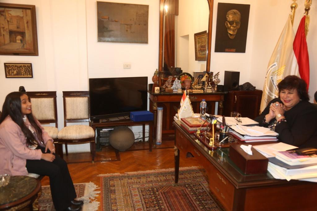 استقبلت الدكتورة إيناس عبد الدايم وزيرة الثقافة، الطفلة ملك محمد (٩سنوات ) بالصف الثالث الابتدائي وإحدى المشاركات في مؤتمر قادرون باختلاف وذلك تحقيقا لحلمها بأن تكون وزيرة ثقافة لمدة يوم تباشر فيه عمل الوزارة وتطلع على ما تقوم به من مهام.