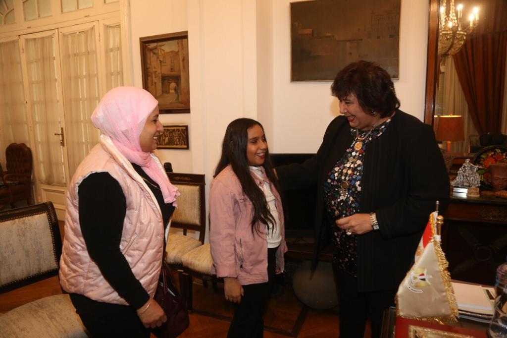 وقررت ضمها الى فرقة مسرح الشمس لذوى القدرات الخاصة واستحداث فصل نوعى خاص بذوى الهمم لدراسة آلة البيانو يتبع مركز تنمية المواهب، ووعدتها بتحديد موعد خلال الاسبوع المقبل لاتاحة الفرصة لها لتحقيق حلمها وطرح أفكارها والاجتماع بقيادات الوزارة وممارسة مهام وزيرة الثقافة.