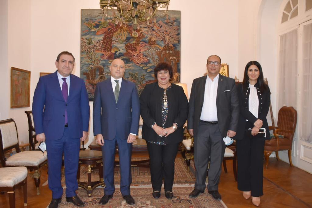 استقبلت الدكتورة إيناس عبد الدايم وزيرة الثقافة، كريموف آنار جابيل أوغلو وزير ثقافة أذربيجان، وتورال رضاييف سفيرها بمصر والوفد المرافق لهما وذلك لبحث سبل دعم وتعزيز التعاون المشترك فى شتى المجالات الفنية والثقافية.