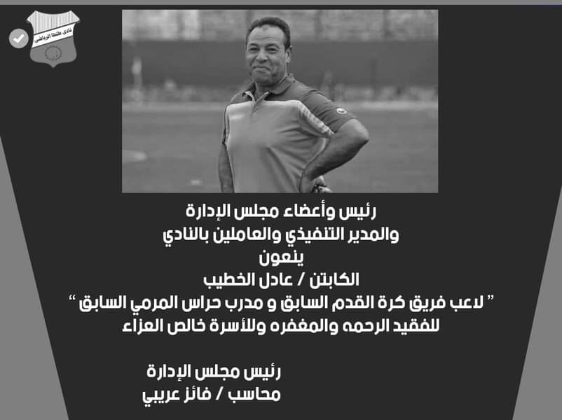 وقال النادي: رئيس وأعضاء مجلس إدارة نادي طنطا والمدير التنفيذي والعاملين بالنادي، ينعون الكابتن عادل الخطيب لاعب فريق كرة القدم السابق ومدب حراس المرمى السابق، للفقيد الرحمة والمغفرة والأسرة خالص العزاء.