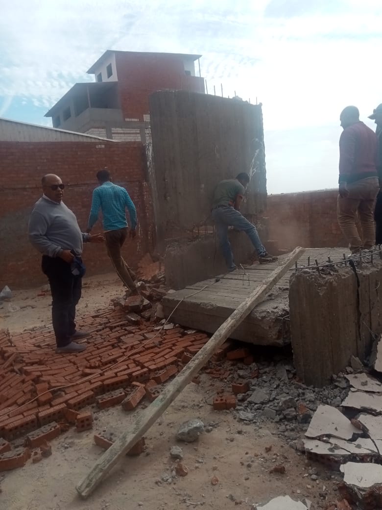 وأضافت أنه تم إزالة أعمدة وحوائط بالطوب الأحمر الدور الثامن علوى بشارع النقيطى بحوض الزعفران لتجاوز قيود الارتفاع والبناء بدون ترخيص.