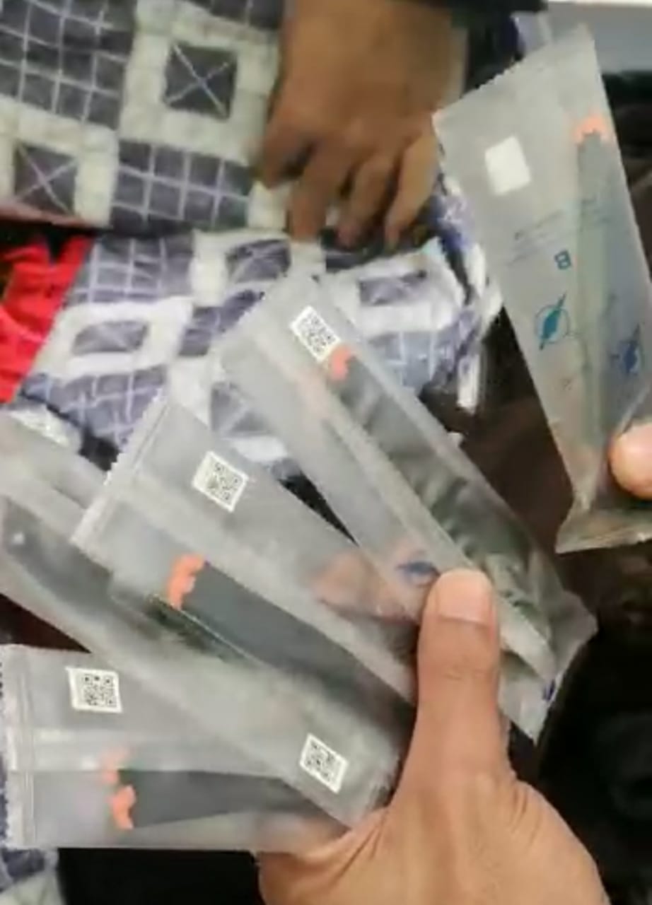 وبتفتيش حقائبه على جهاز الفحص بالأشعة بواسطة كل من محمد جمال الدين محمد مأمور الجمرك ومحمد عبد المنعم رئيس القسم واللذان تبين لهما وجود كثافات متماثلة داخل حقائب الراكب قام احمد محمد فوزي مدير الحركة المشرف على صالة الوصول بمبني الركاب رقم ٢ بتكليف سامي نبيل سامي مأمور الجمرك بتفتيش حقائب الراكب يدويا مما أسفر عن ضبط طائرة مزودة بكاميرات مفككة على ١٩ قطعة مخبأين داخل أحذية وطيات ملابس الراكب بالحقائب وأيضا ١٢ تليفونا محمولا تم إخفاؤها بنفس الطريقة.