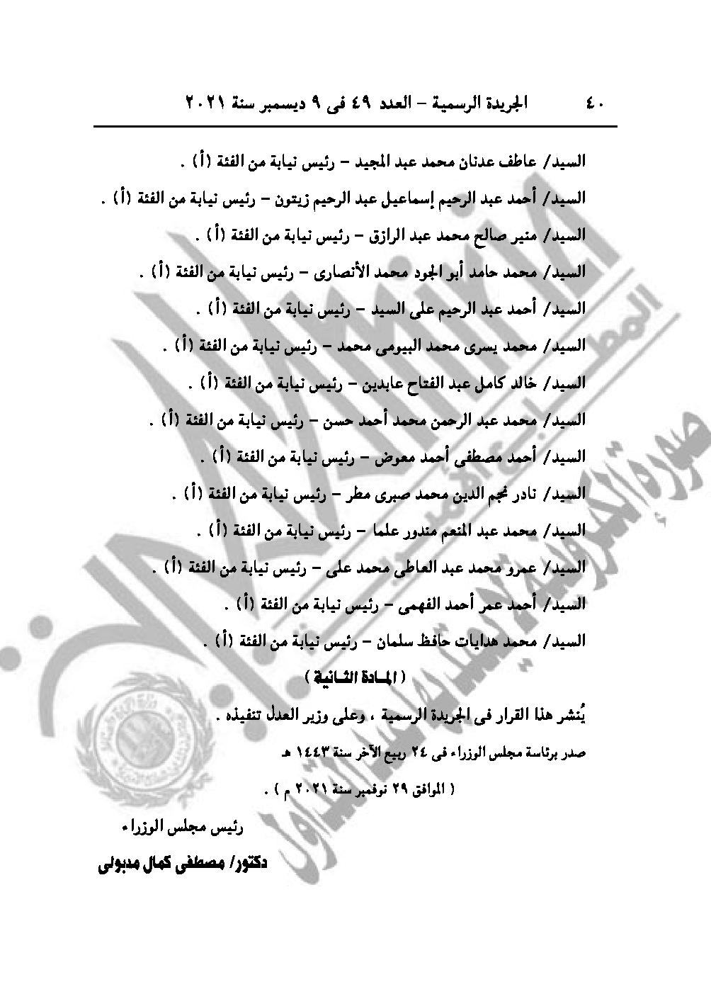 نشرت الجريدة الرسمية في عددها رقم 49، الصادر في 9 ديسمبر 2021، قرارات رئيس الوزراء الدكتور مصطفى مدبولي، بشأن بشأن تجديد نـدب ونـدب بعـض القضاة وأعضاء النيابة العامة بعد للعمل بمكتب شئون أمن الدولة.
