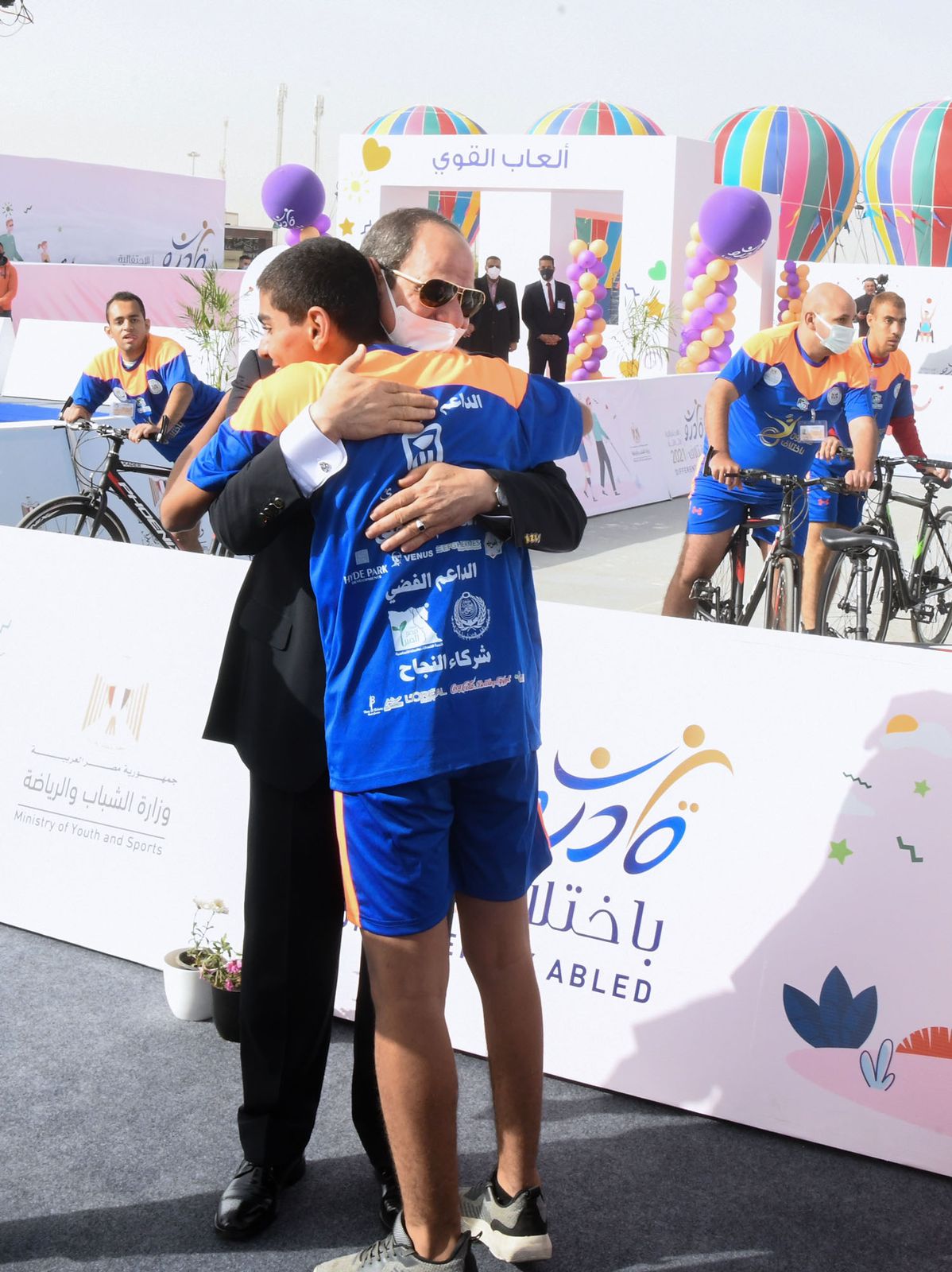 وأكد الرئيس للقائمين على الفعاليات ولأبنائه من ذوي الهمم أن الدولة بكافة مؤسساتها تحرص على صقل مهاراتهم ورعايتهم وتمكينهم ودمجهم في المجتمع، مؤكدًا أن حرصه على المشاركة في هذا التقليد السنوي الهام يعكس اهتمام الرئيس الشخصي ببذل الجهد والعطاء مع الأسر وكافة المؤسسات التربوية والتدريبية والتأهيلية المعنية لتحقيق هذا الهدف النبيل.