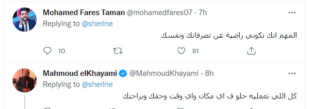 وعلق الماحن محمود الخيامي قائلًا: "كل اللي تعمليه حلو ف اي مكان واي وقت وحقك وبراحتك"