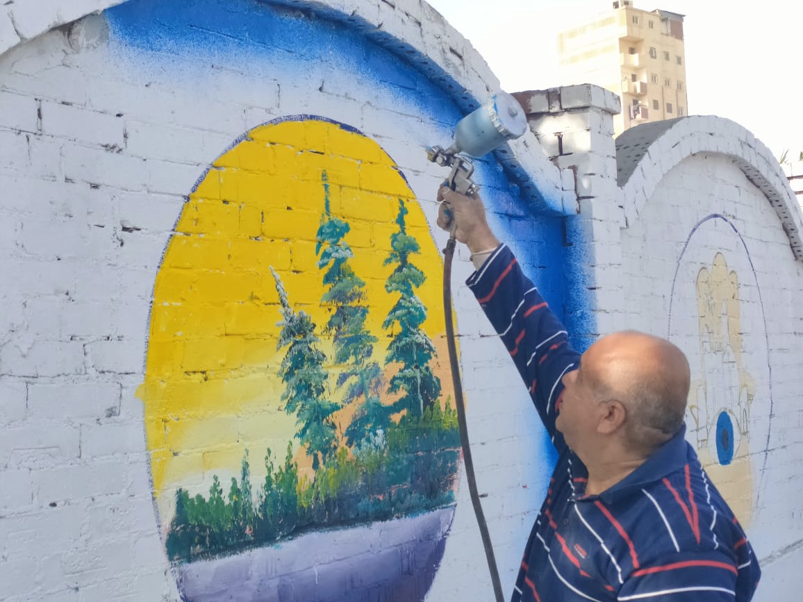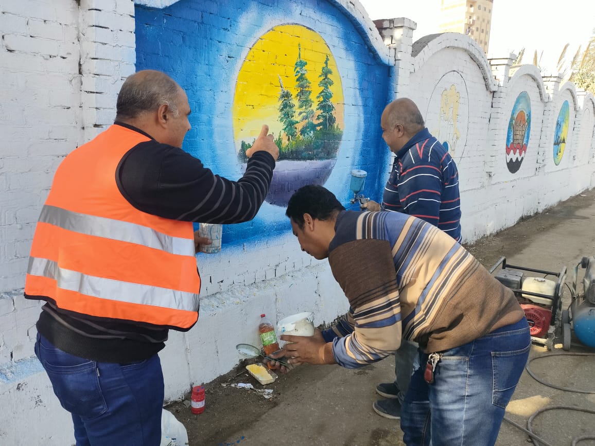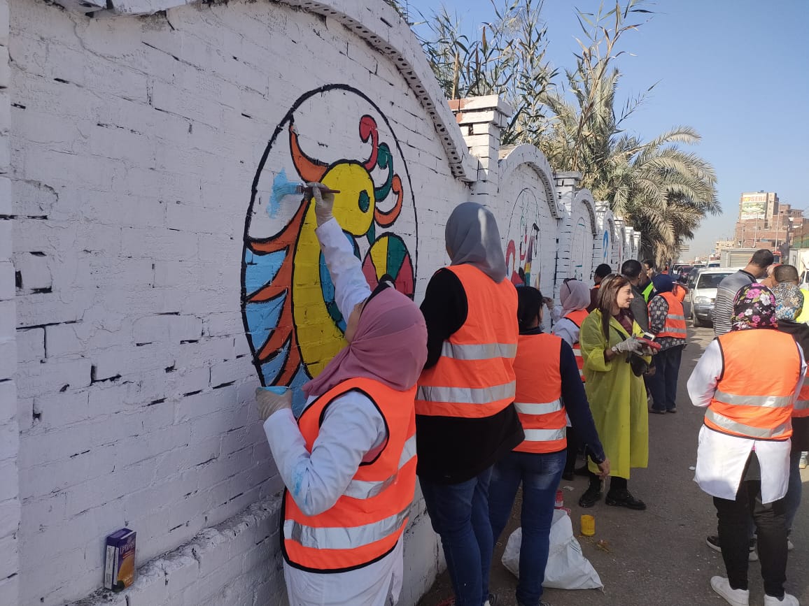 قام المعلمون بالرسم على الجداريات لأكثر من ٢ كيلو متر، على اسوار المدخل الجنوبي لمدينة طنطا.