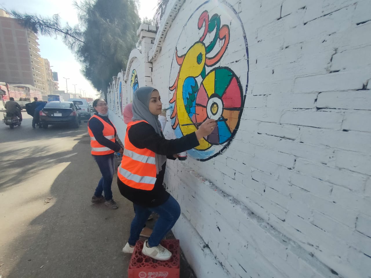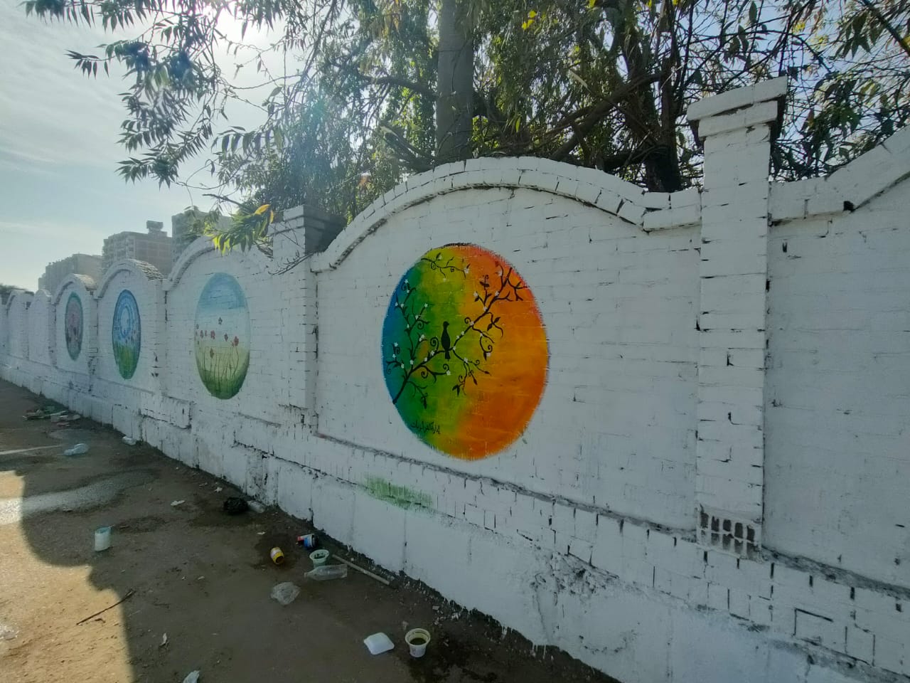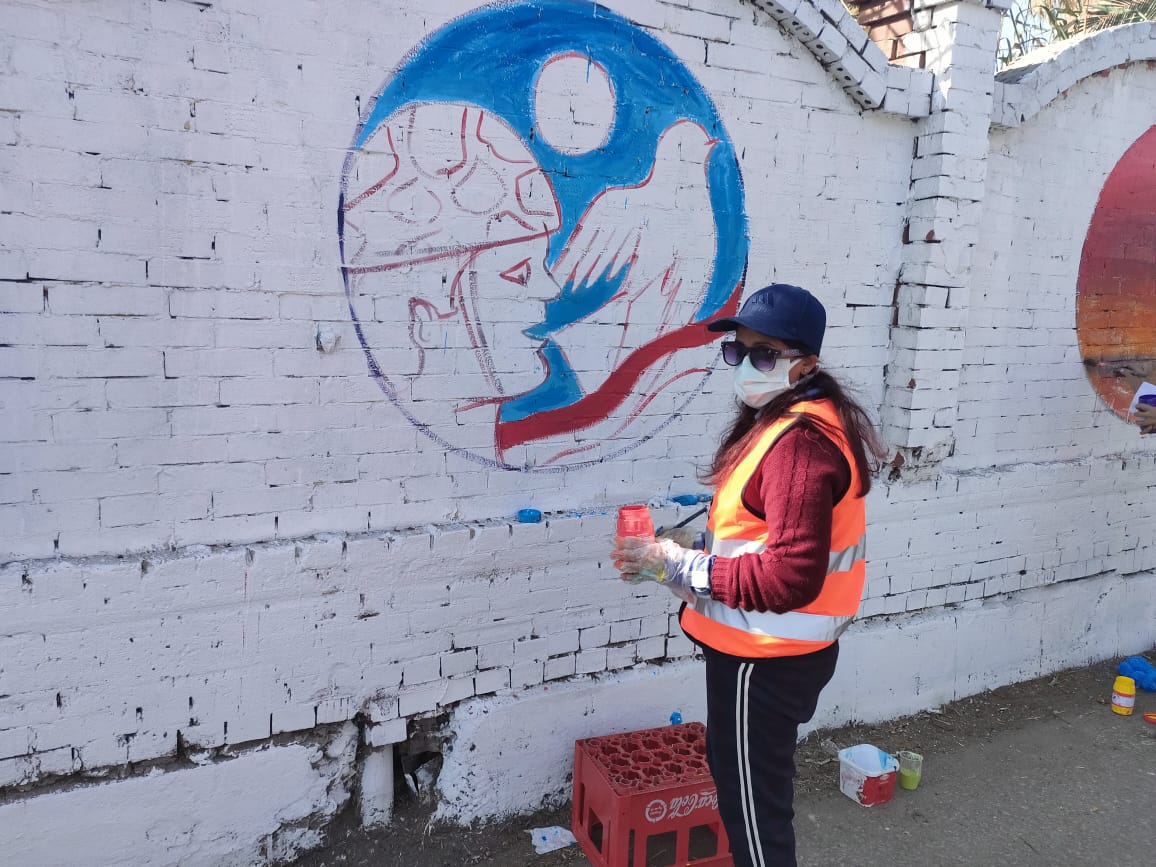 قام المعلمون بالرسم على الجداريات لأكثر من ٢ كيلو متر، على اسوار المدخل الجنوبي لمدينة طنطا.