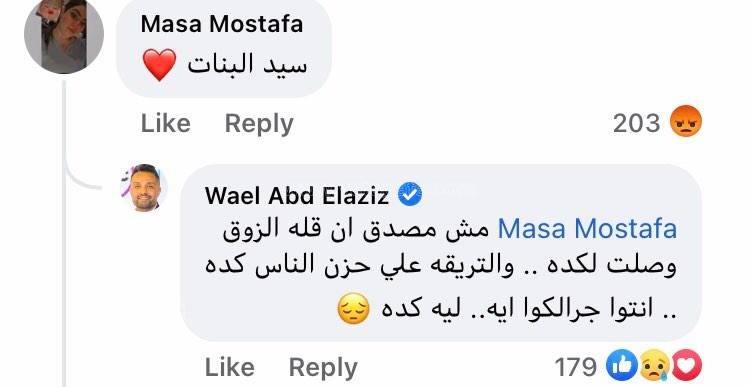هذا الأمر الذي دفع "وائل" للرد على تعليق المتابعة، قائلًا: "مش مصدق إن قلة الذوق وصلت لكده.. والتريقة على حزن الناس وصل لكده.. جرى لكم إيه ؟! ليه كده؟!".