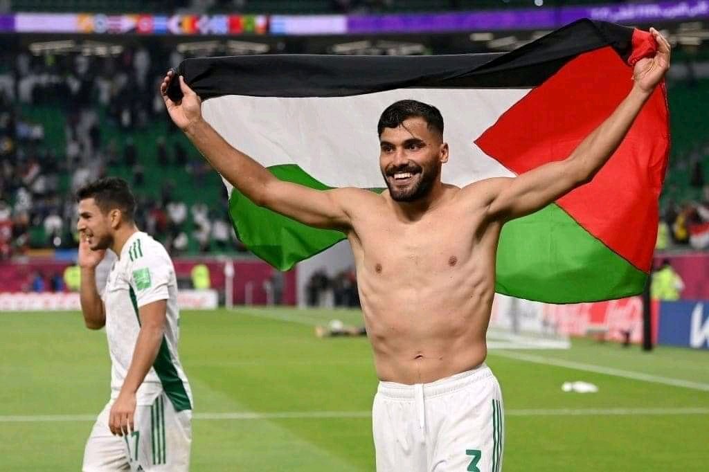 ورفع اللاعبون أعلام فلسطين تعبيرًا عن تضامنهم مع القضية الفلسطينية.