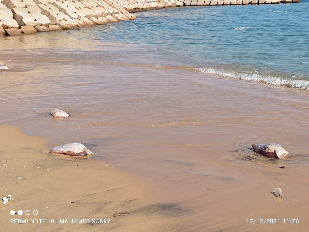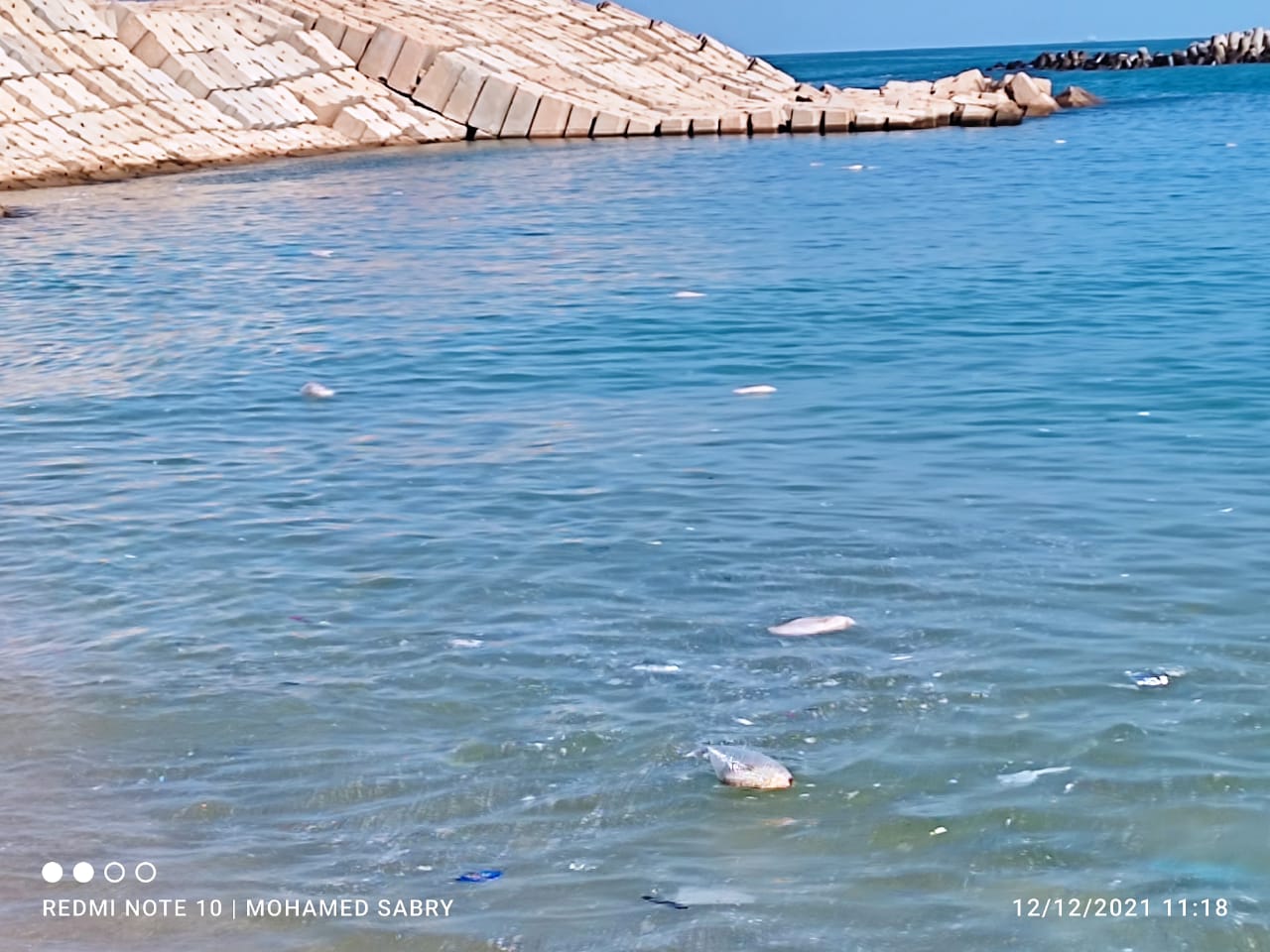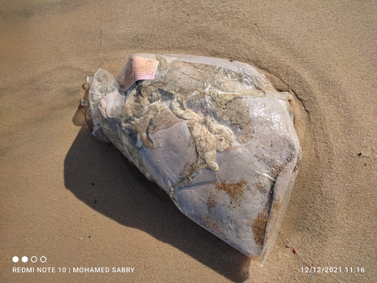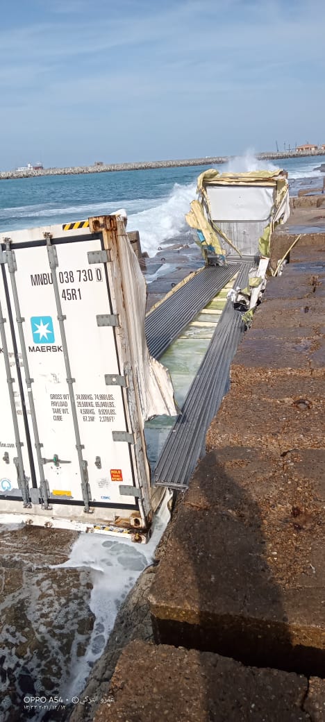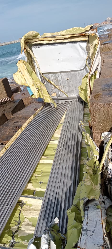 إزالة تلوث بحري ناتج عن سقوط حاوية لحوم بالإسكندرية