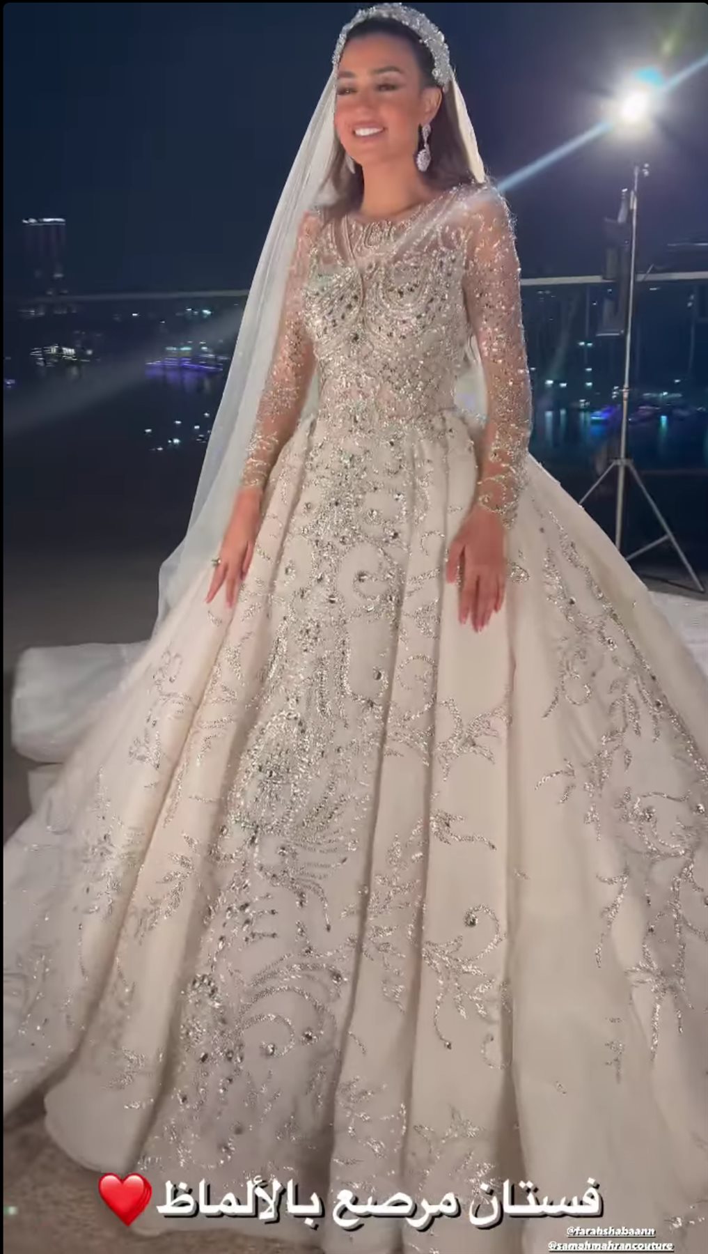 مرصع بالألماس.. اليوتيوبر علي غزلان يثير الجدل بفستان زفاف زوجته | صور