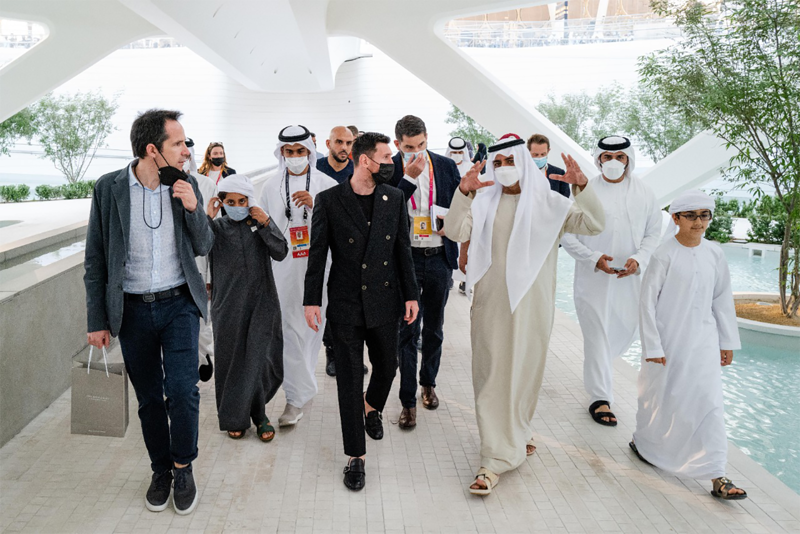 والتقى ميسي خلال زيارته لجناح دولة الإمارات، مع الشيخ نهيان بن مبارك آل نهيان، وزير التسامح والتعايش الإماراتي، المفوض العام لإكسبو 2020 دبي، ومع نورة بنت محمد الكعبي، وزيرة الثقافة والشباب.