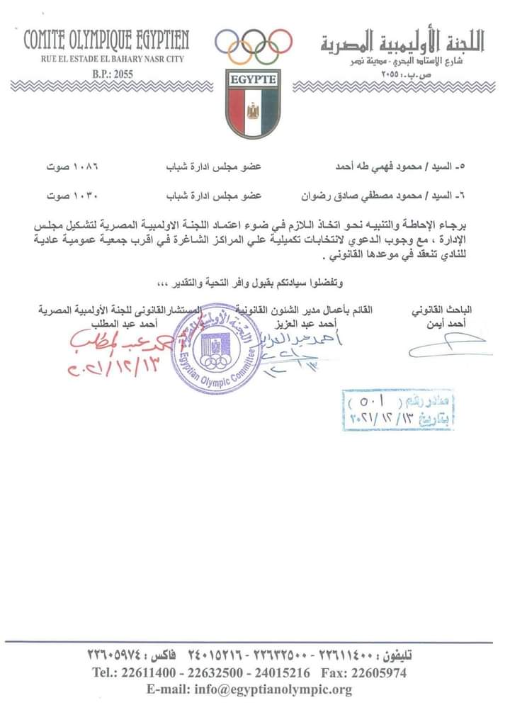وأكدت الاوليمبية في خطابها الرسمي ضرورة الدعوة لانتخابات تكميلية علي المراكز الشاغرة في اقرب عمومية للنادي في منصب رئيس النادي ونائب رئيس النادي ومنصب العضوية فوق السن.