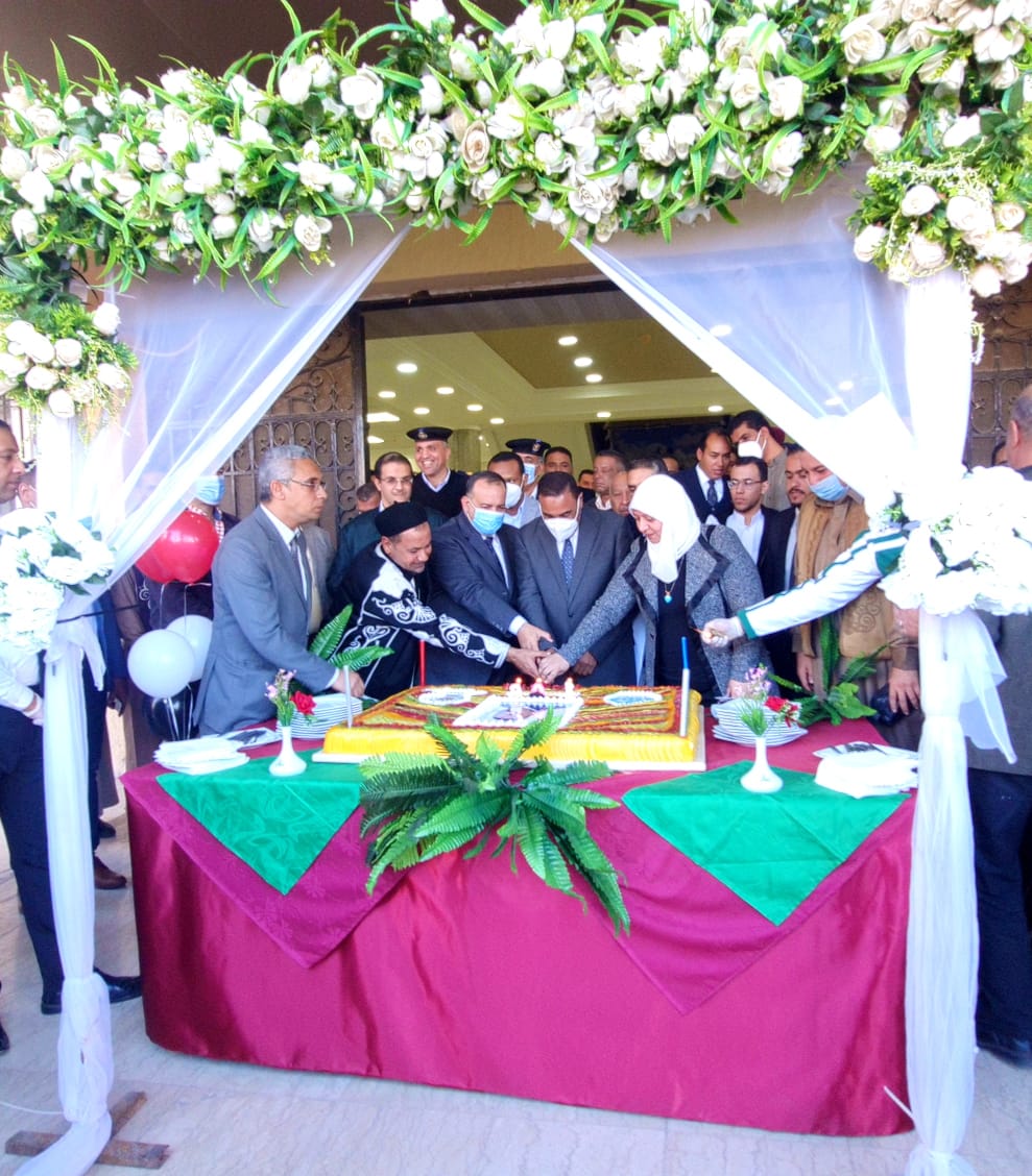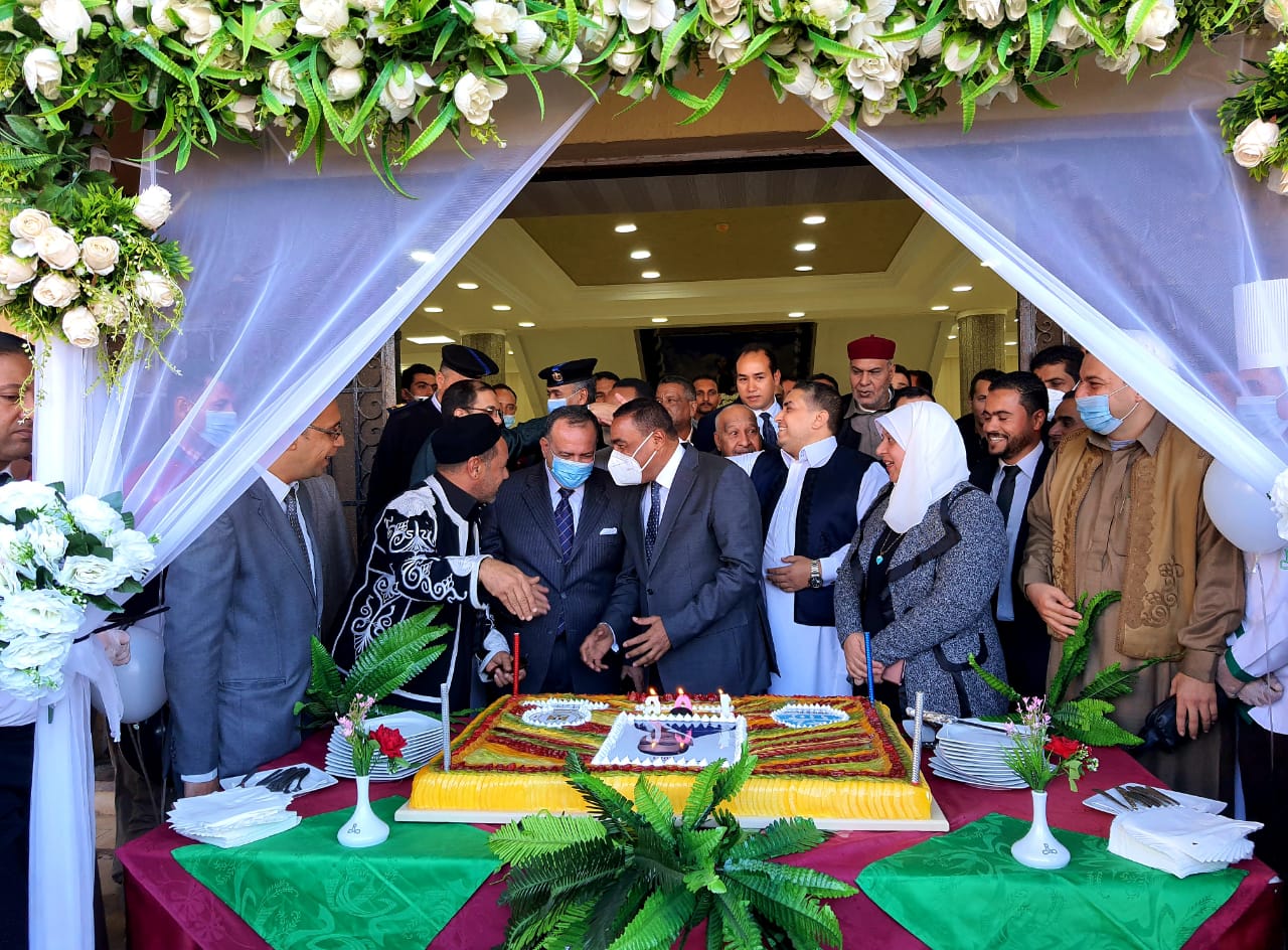 وقام اللواء خالد شعيب محافظ مطروح ونائبه ومدير الأمن بتقطيع تورتة الاحتفال بالعيد القومي .