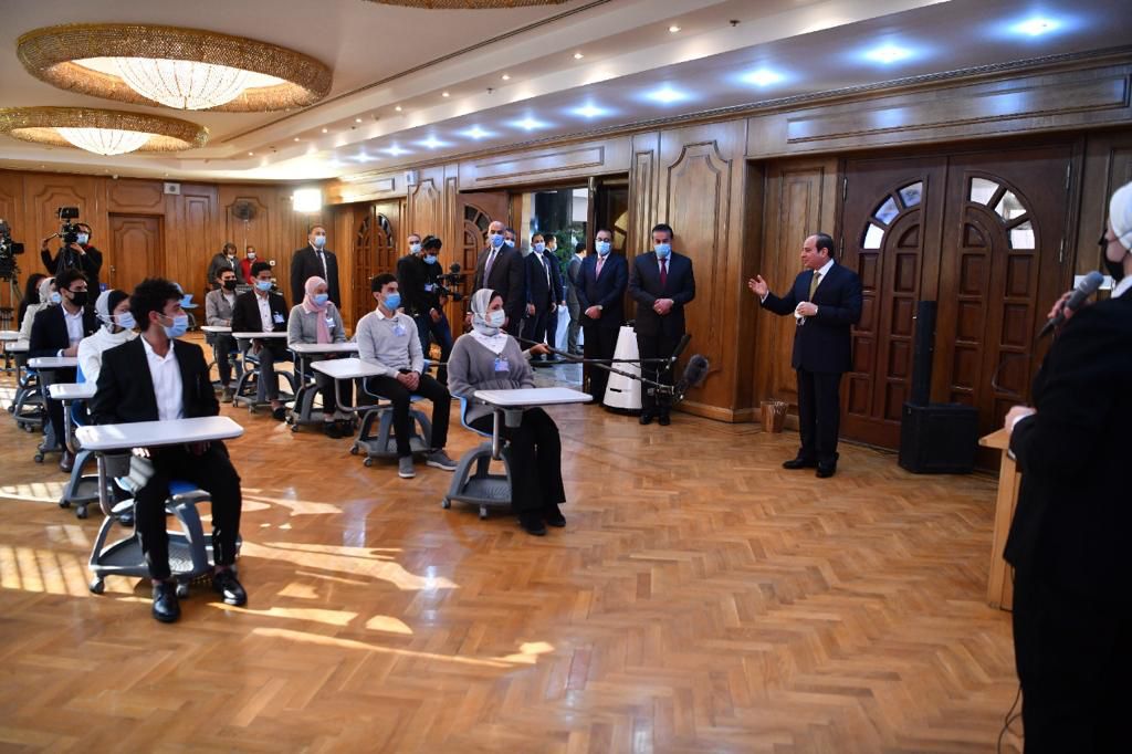 وأكد الرئيس حرص الدولة على الارتقاء بمستوى الجامعات الحكومية بالتوازي مع إنشاء الجامعات الجديدة على مستوى الجمهورية، وذلك وفق نهج يعتمد على توفير التعليم والتدريب المناسب لسوق العمل الحالي والمستقبلي، وفي إطار الأولوية القصوى للدولة للاهتمام بالشباب وتدريبهم وتأهيلهم في كافة المجالات باعتبارهم الأمل والكنز الحقيقي لمصر لتحقيق التنمية الشاملة والمستدامة خلال السنوات المقبلة.