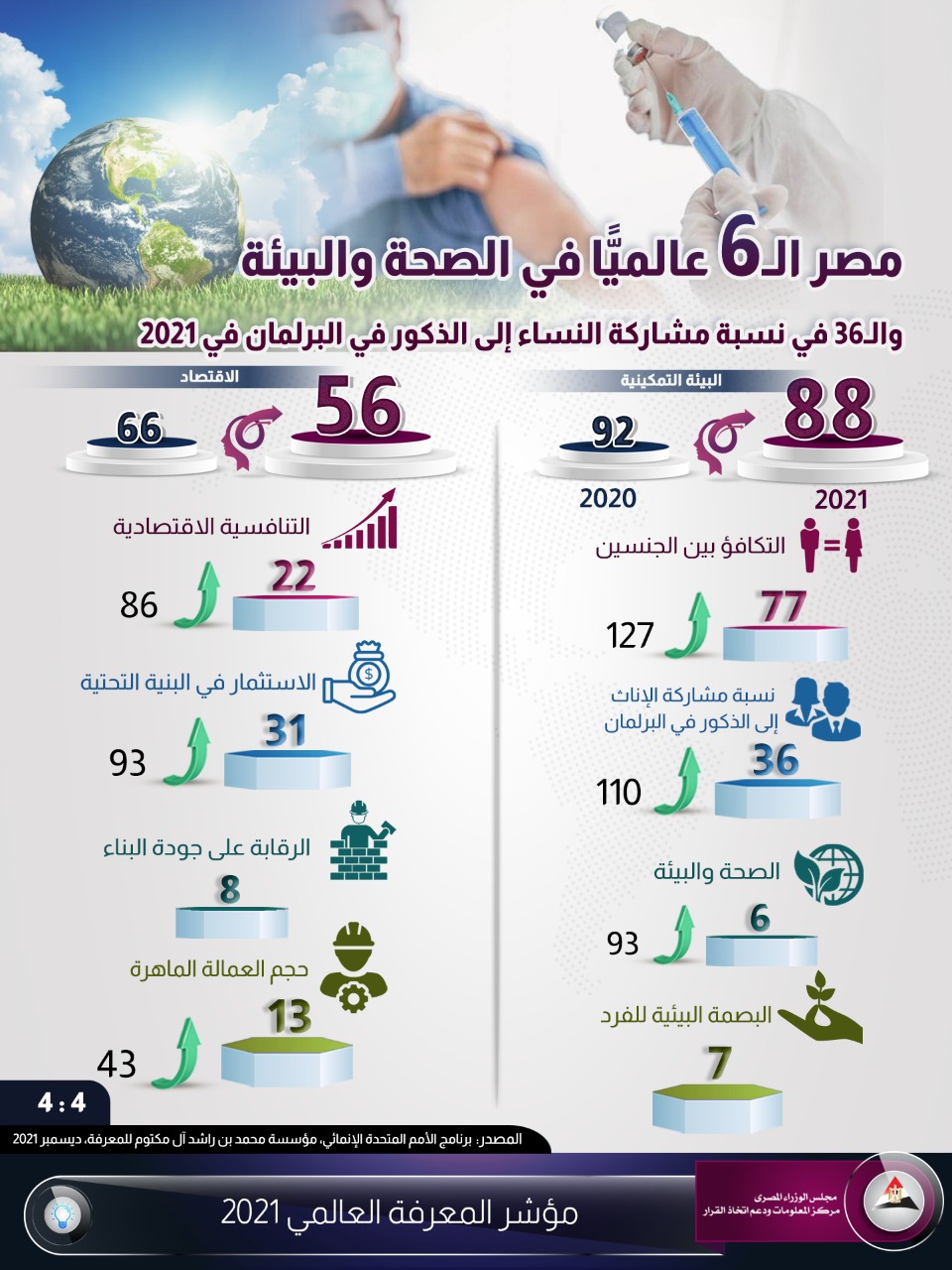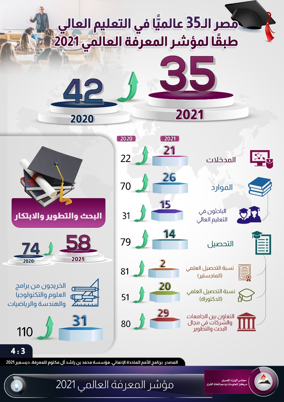 مصر تقفز 19 مركزًا في مؤشر المعرفة العالمي 2021 | إنفوجراف