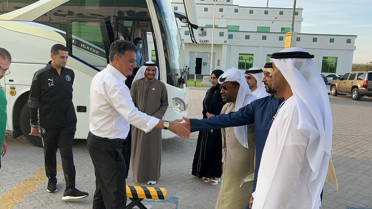 رئيس نادي الإمارات يستقبل فريق بيراميدز بمعسكر دبي | صور