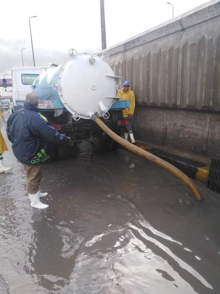 وفي حي الجمرك تابع اللواء حسام الشيخ رئيس الحي تصريف الشنايش والمصبات، كما تابع تمركز سيارات شفط المياه المتواجدة بنطاق الحي للتأكد من عدم تراكم مياه الأمطار.