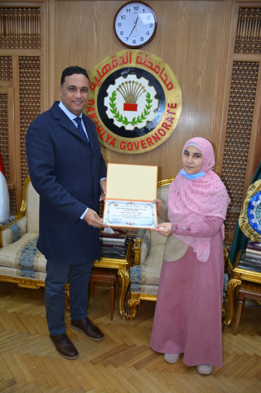 ووجَّه محافظ الدقهلية الشكر والتقدير لأسرة الطالبة على جهودهم التي أسفرت عن تلك الصورة المشرِّفة لابنتهم لتحقق التفوق والتميز.