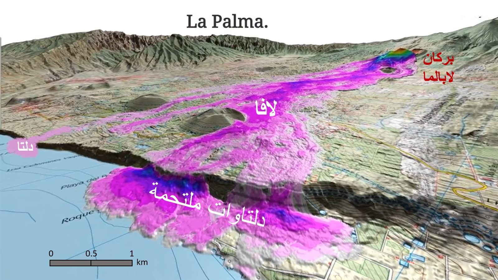 وتابع في منشوره: "تكونت دلتاوات جديدة بمساحة حوالي 300 فدان، وخرج 500 مليون متر مكعب حمم بركانية غطت حوالي 5 آلاف فدان من الأراضي الزراعية والطرق وتدمير أكثر من 3000 منزل ومبنى، كما انخفضت الزلازل من حيث العدد والقوة رغم حدوث زلزال منذ 30 دقيقة بقوة 3.5 ريختر على عمق 36 كم مما يؤكد عدم انتهاء نشاط البركان تمامًا إلا إذا استمر عدم خروج اللافا لمدة أسبوع على الأقل".